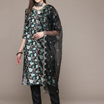 Straight Style Silk Fabric Black Color Kurta With Bottom And Dupatta