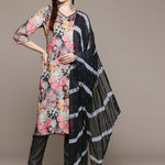 Straight Style Silk Fabric Grey Color Kurta With Bottom And Dupatta