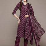 Straight Style Cotton Fabric Burgundy Color Kurta With Bottom And Dupatta