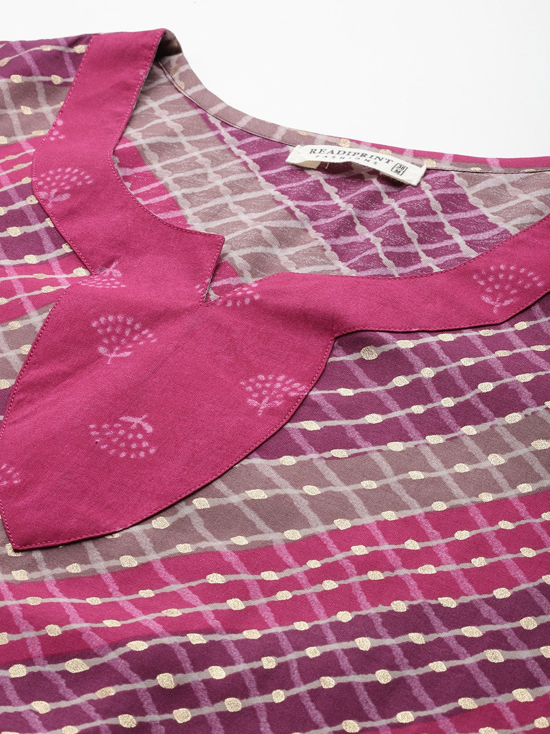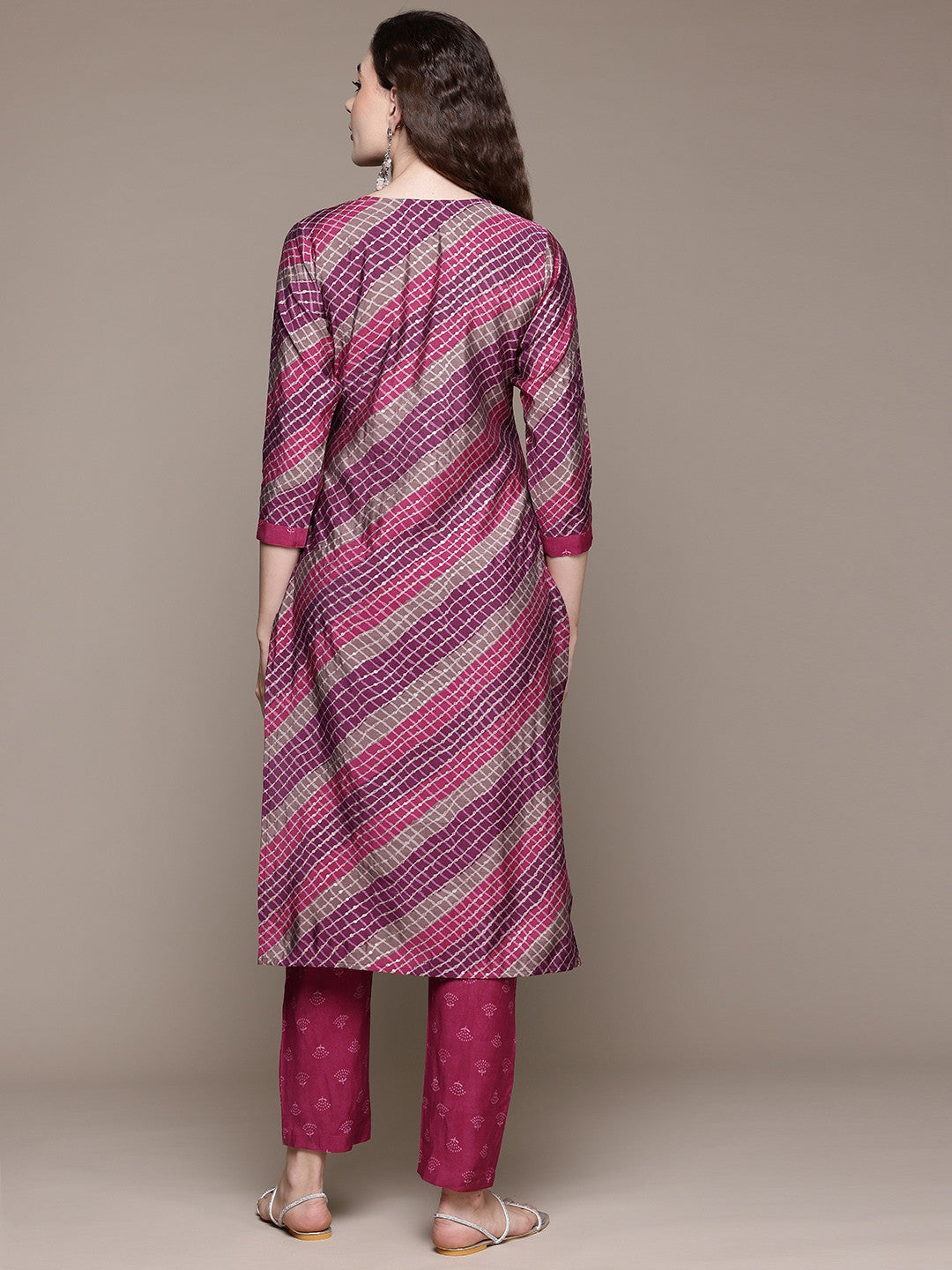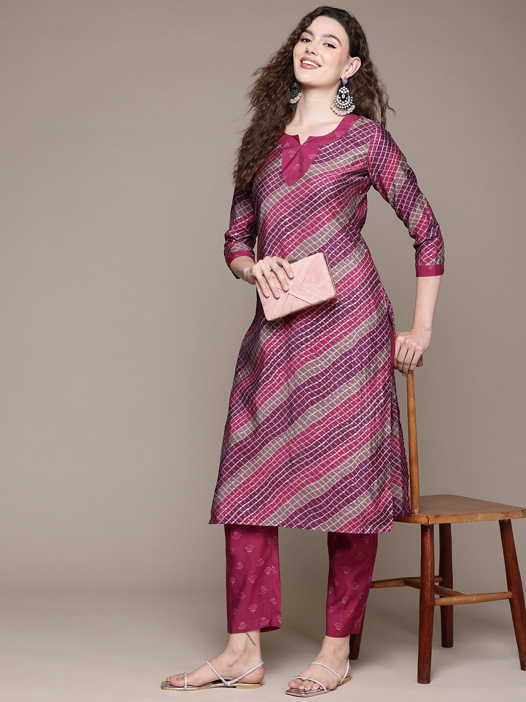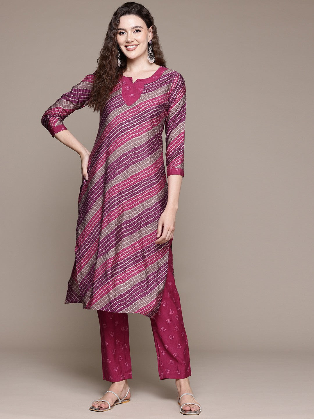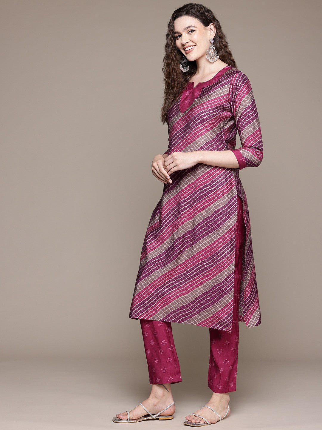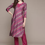 Straight Style Silk Fabric Pink Color Kurta With Bottom