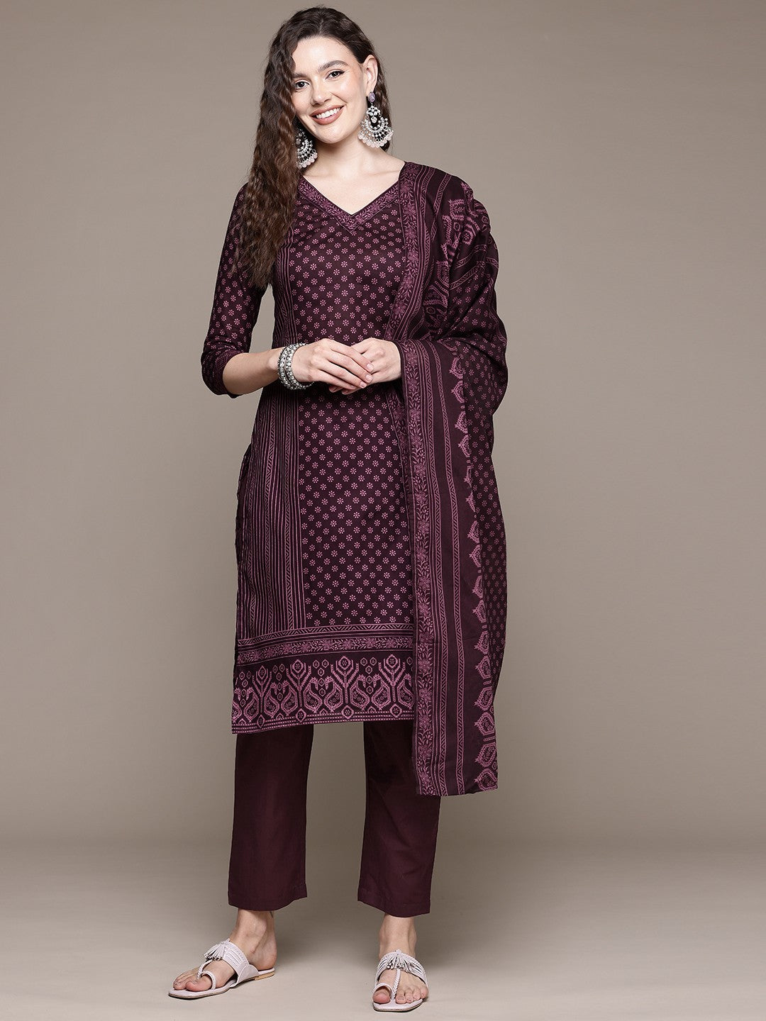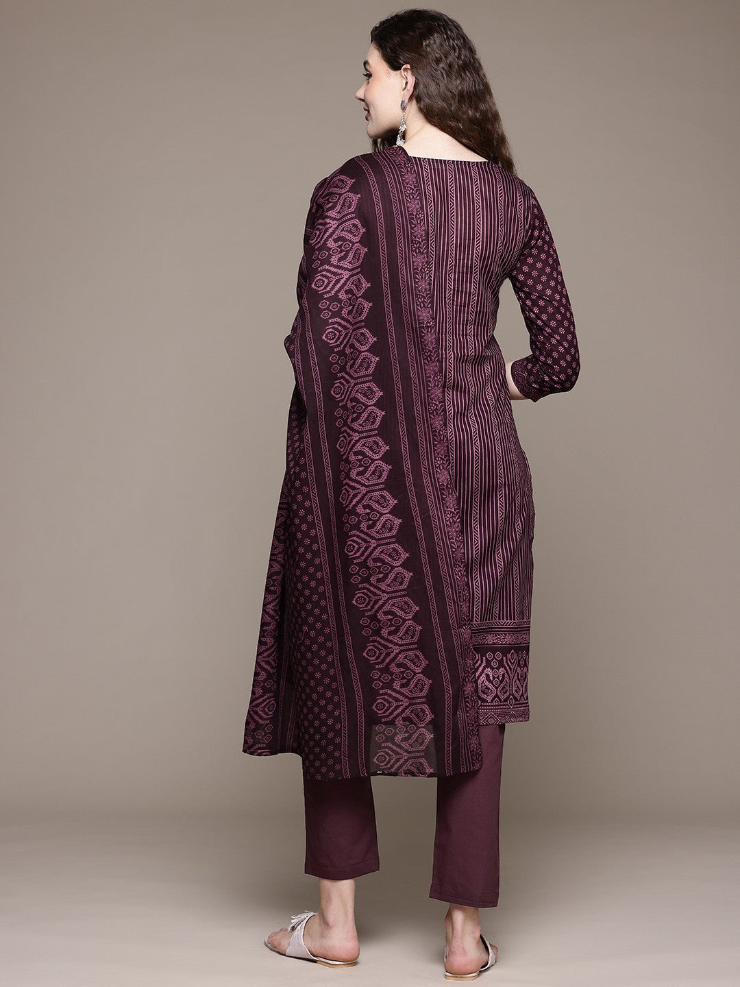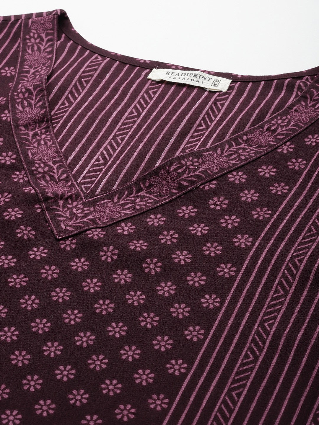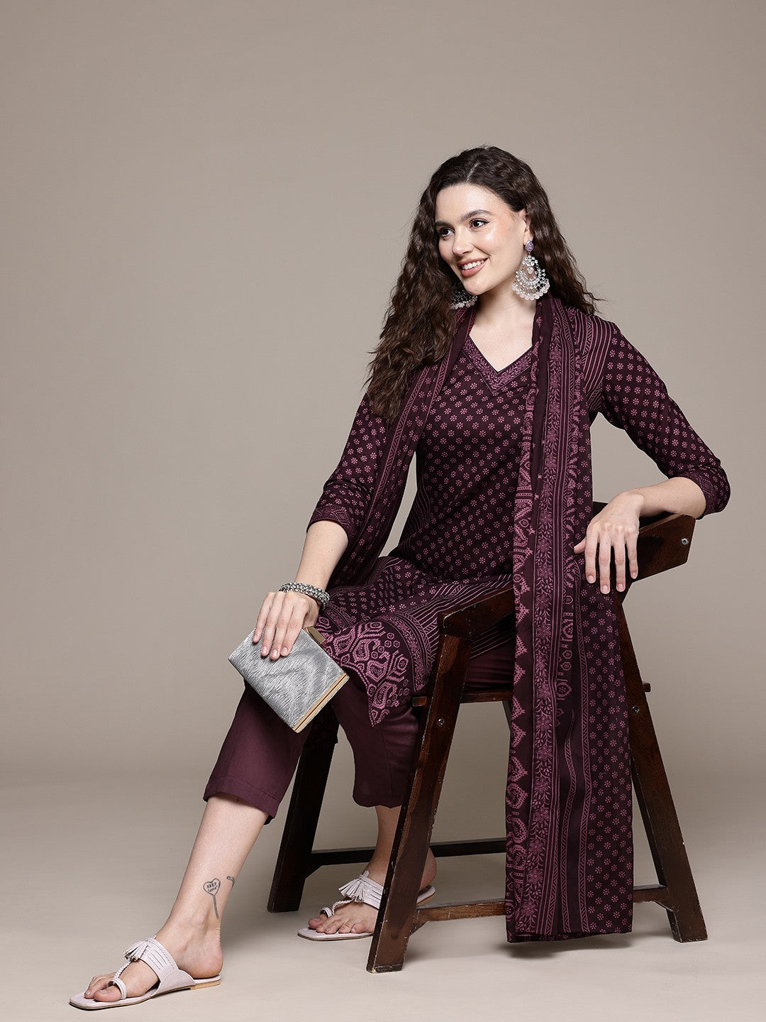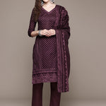 Straight Style Cotton Fabric Burgundy Color Kurta With Bottom And Dupatta