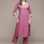 Straight Style Cotton Fabric Pink Color Kurta With Bottom