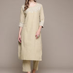Straight Style Cotton Fabric Beige Color Kurta With Bottom