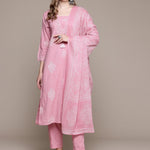 Straight Style Cotton Fabric Mauve Color Kurta With Bottom And Dupatta