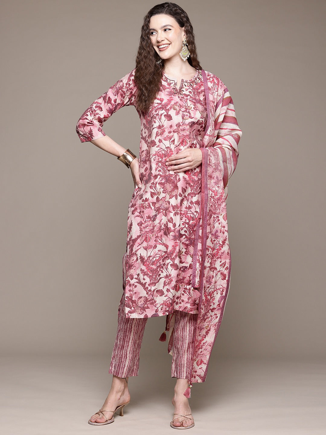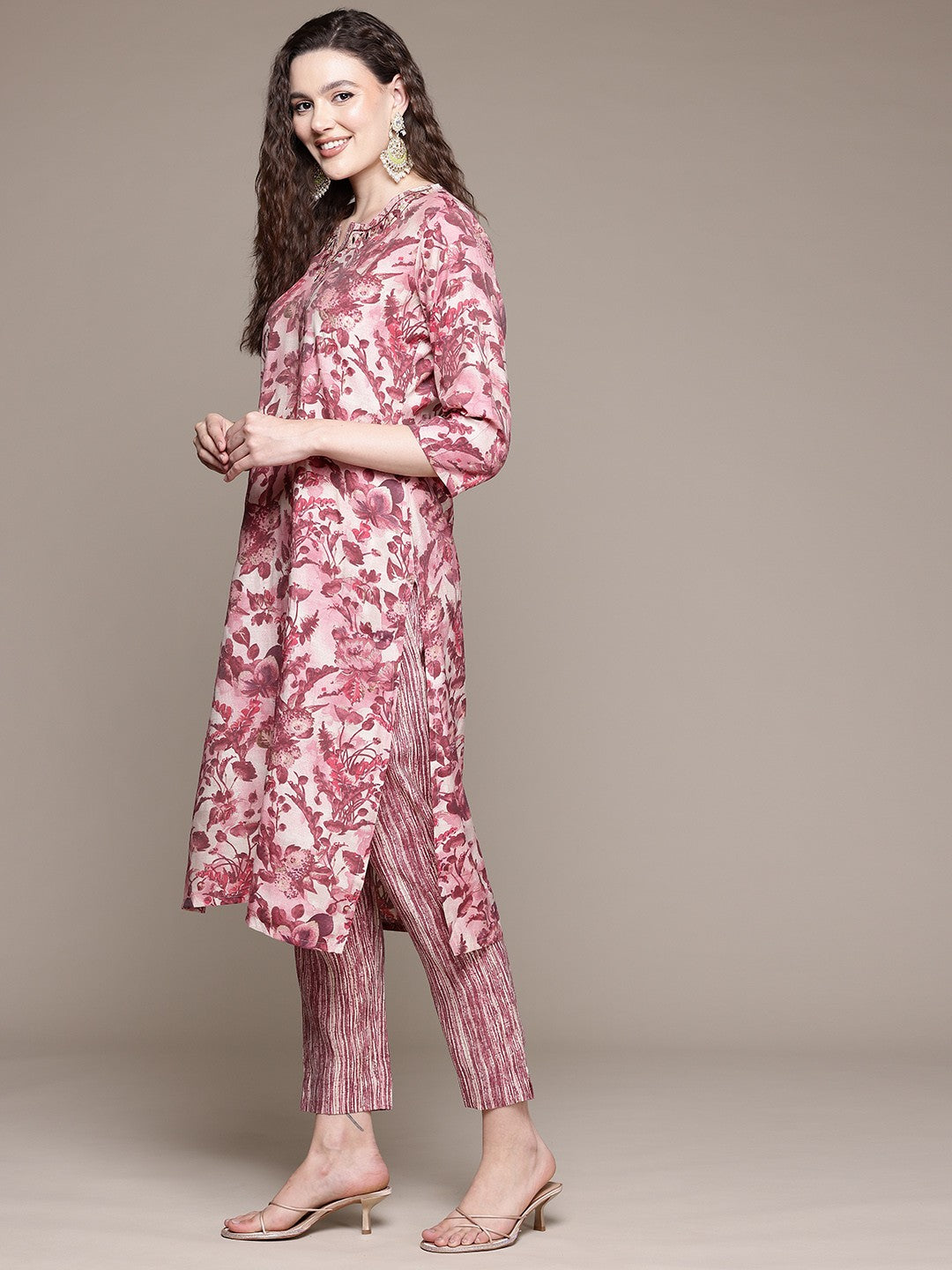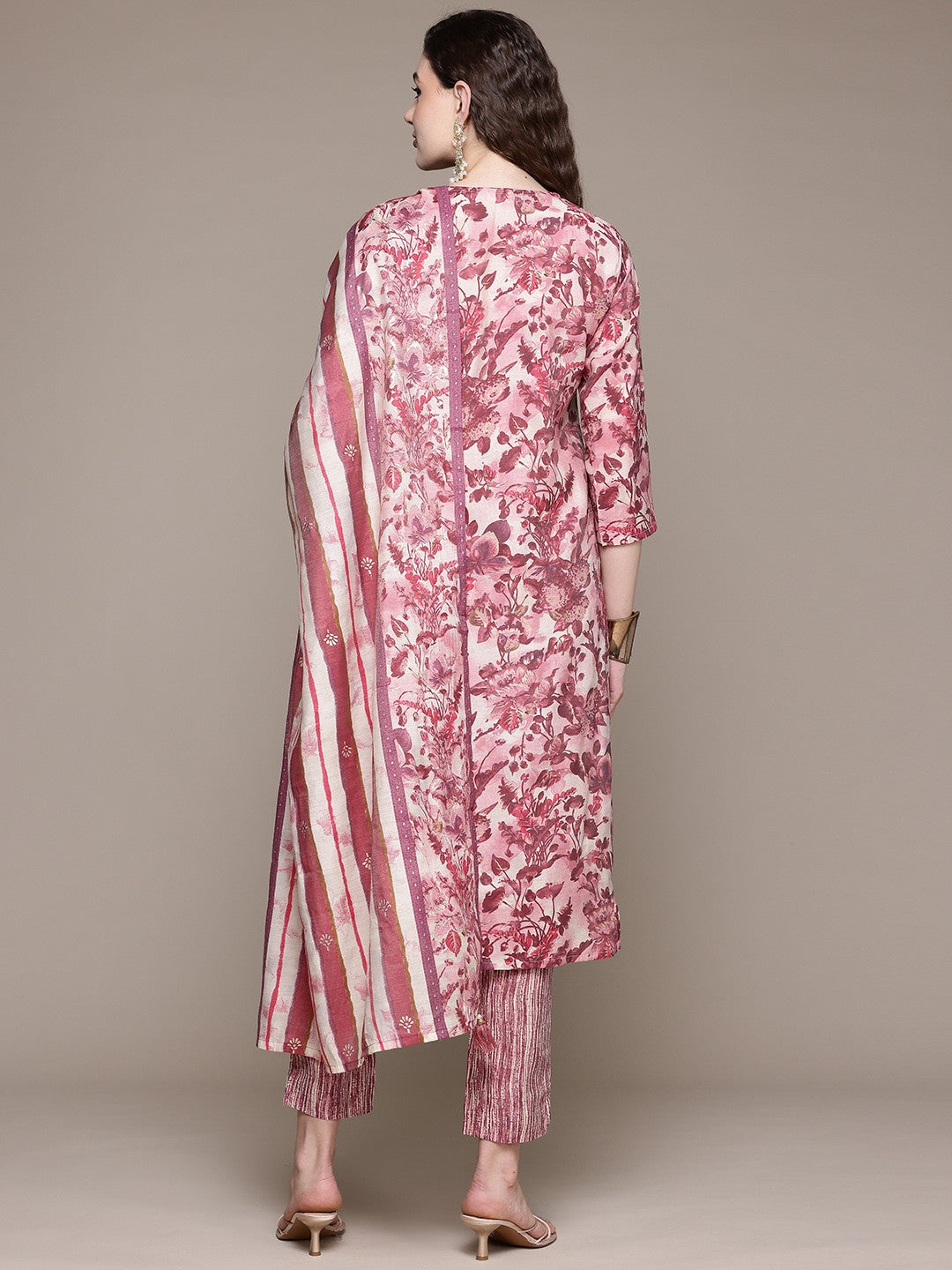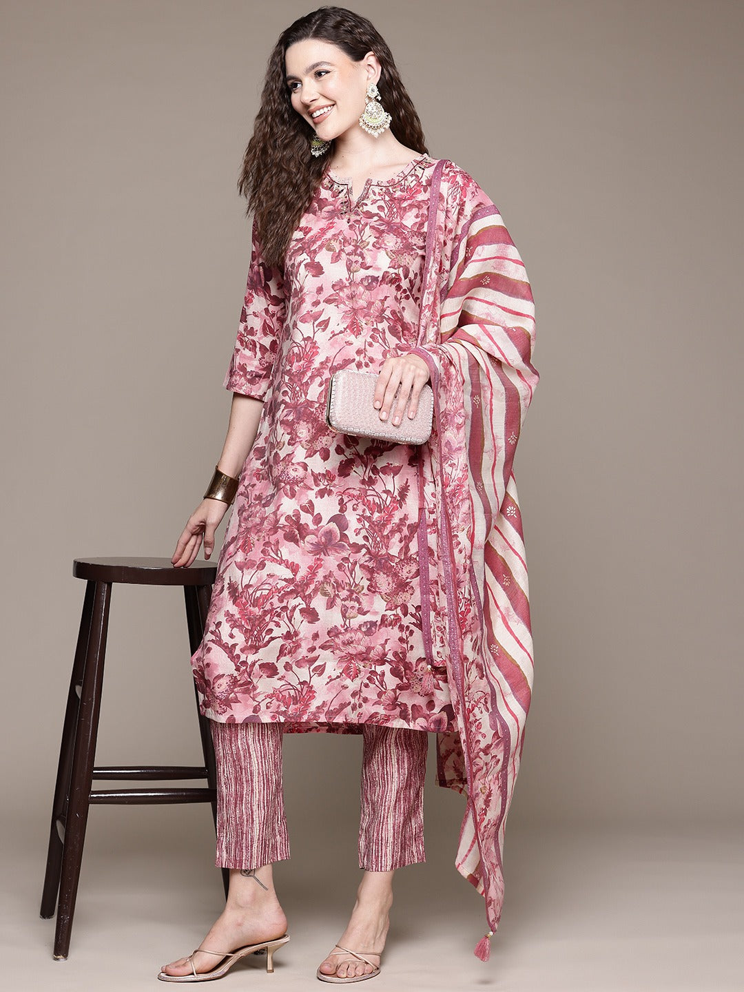 Straight Style Silk Fabric Burgundy Color Kurta With Bottom And Dupatta
