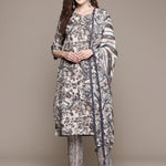 Straight Style Silk Fabric Grey Color Kurta With Bottom And Dupatta
