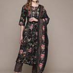 Flared Style Silk Fabric Black Color Kurta With Bottom And Dupatta