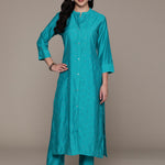 Straight Style Silk Fabric Blue Color Kurta And Bottom