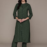 Straight Style Silk Fabric Green Color Kurta And Bottom