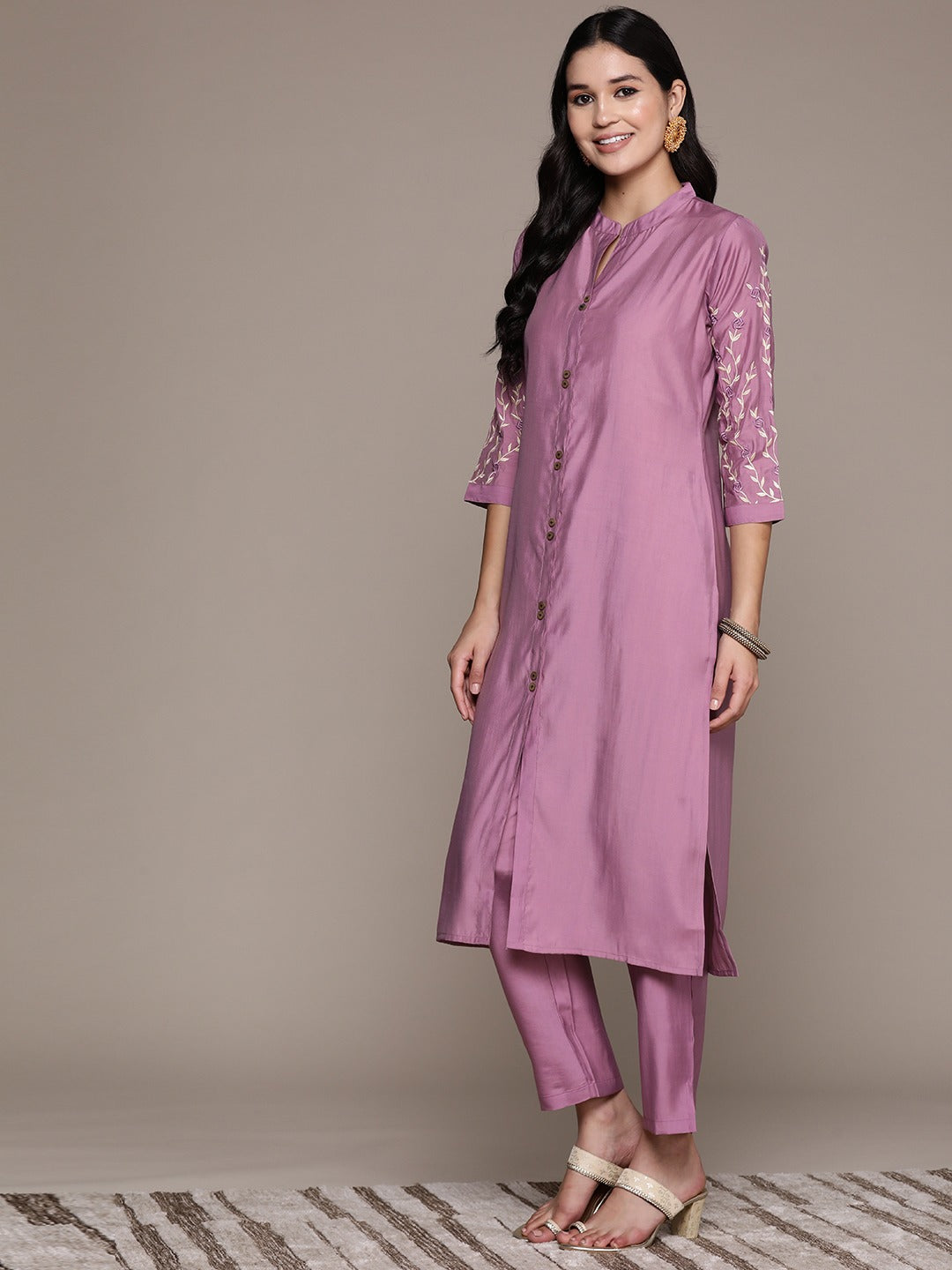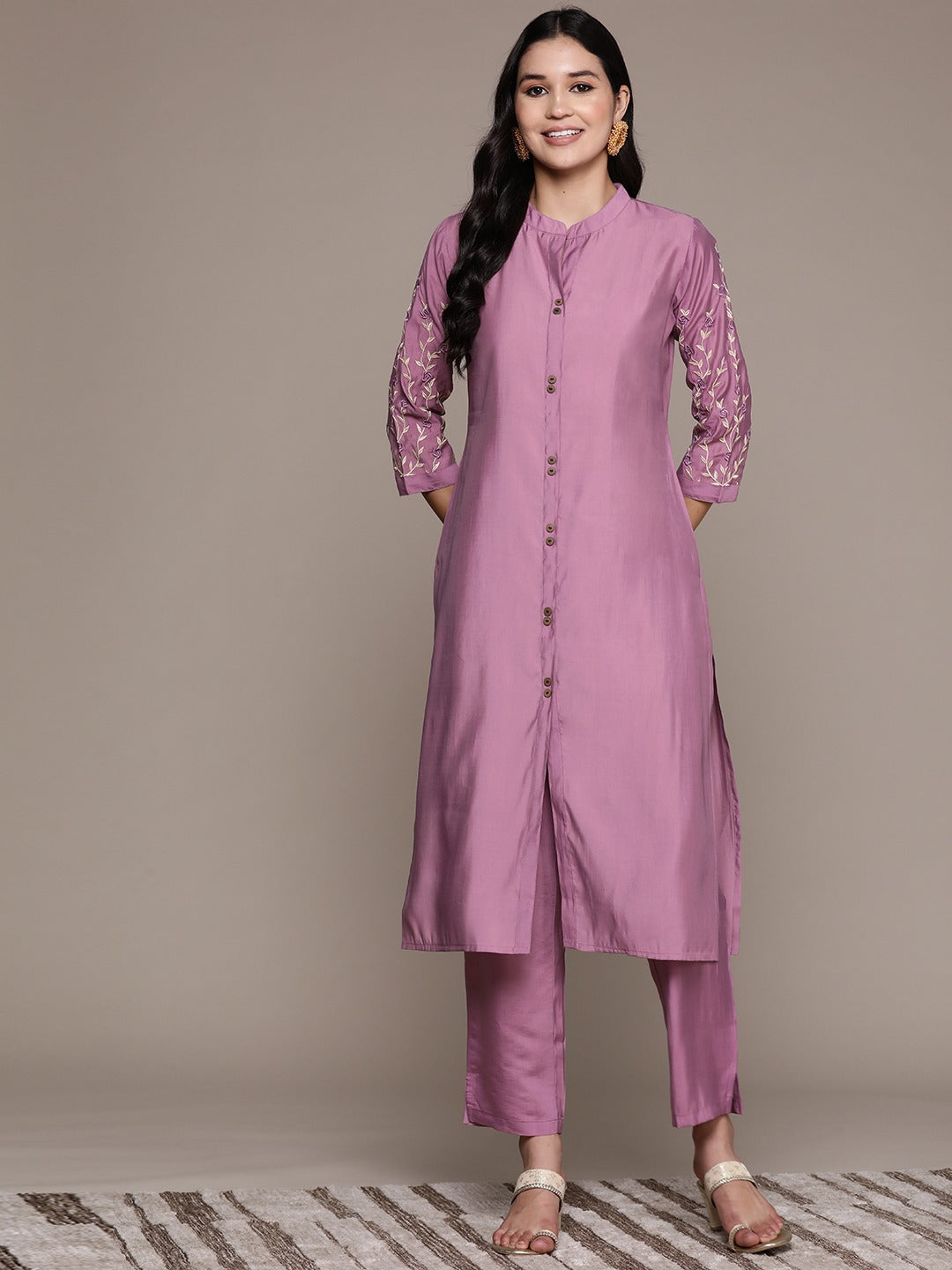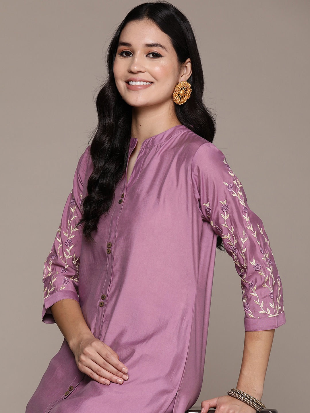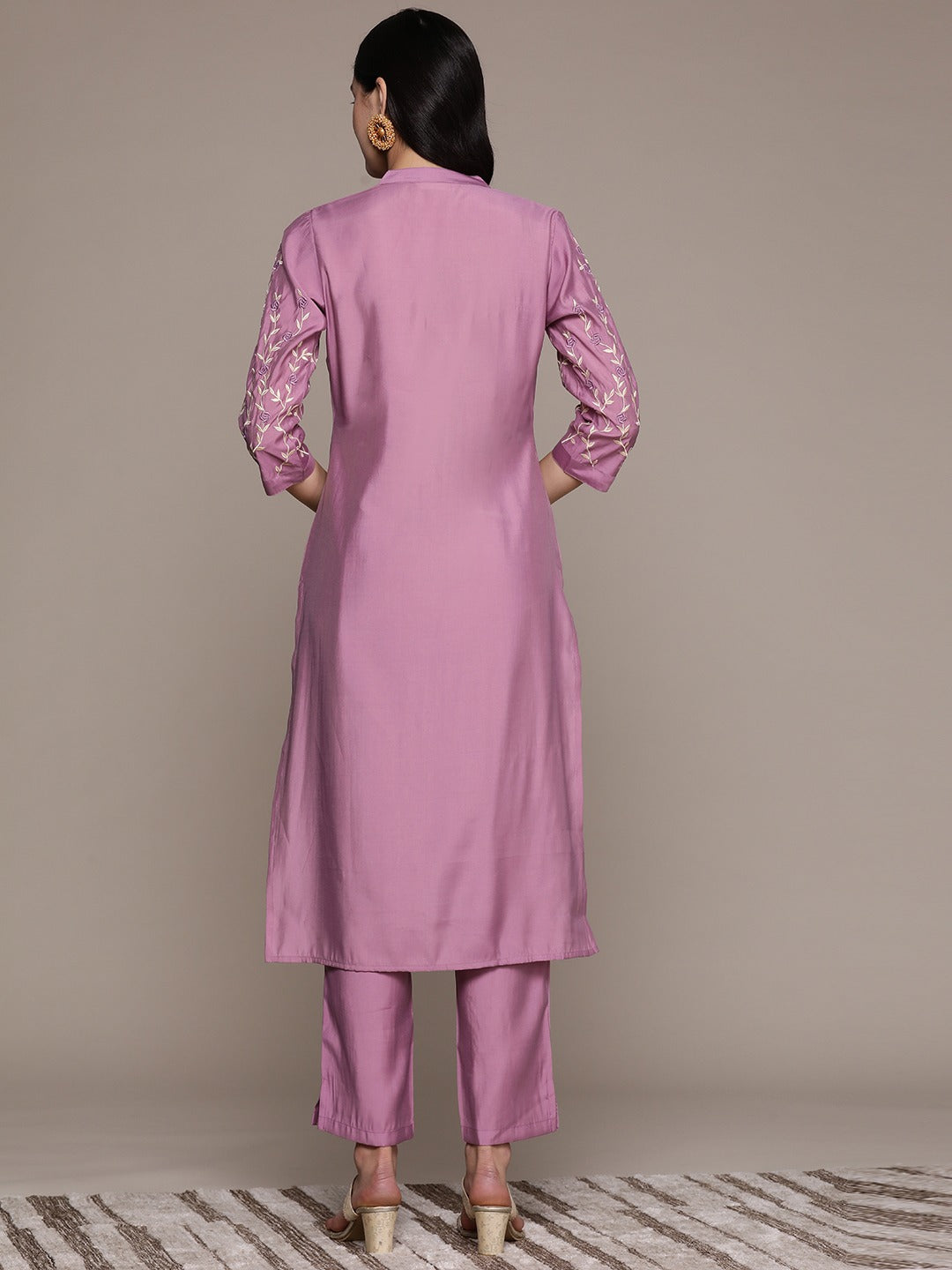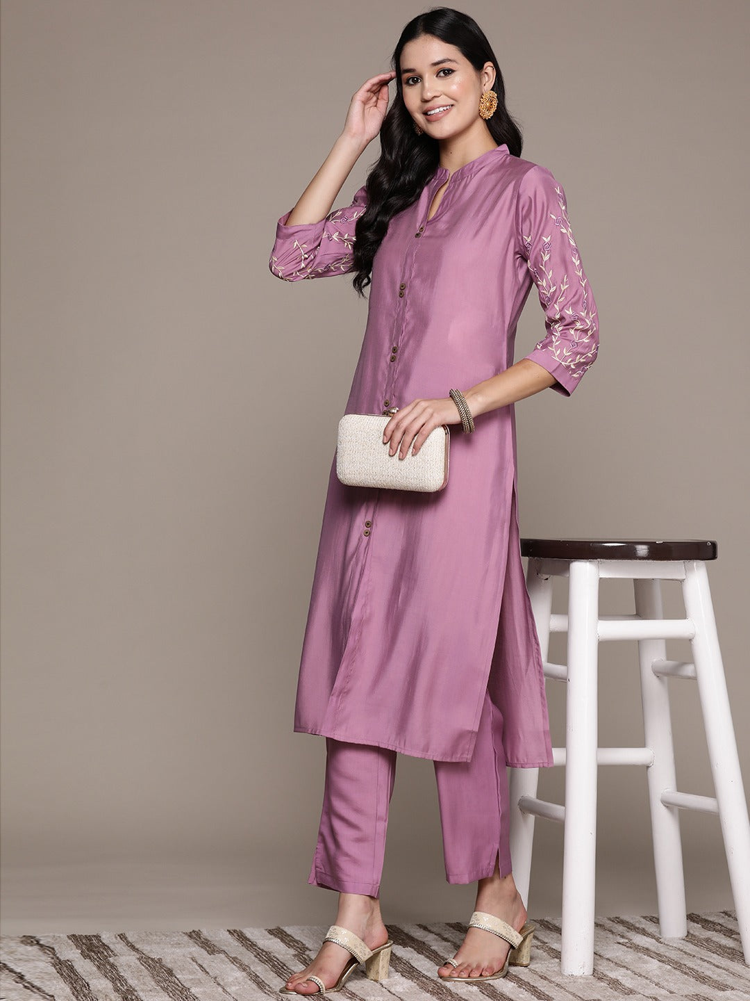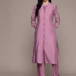 Straight Style Silk Fabric Mauve Color Kurta And Bottom