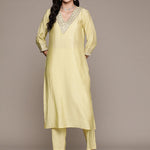 Straight Style Silk Fabric Yellow Color Kurta And Bottom