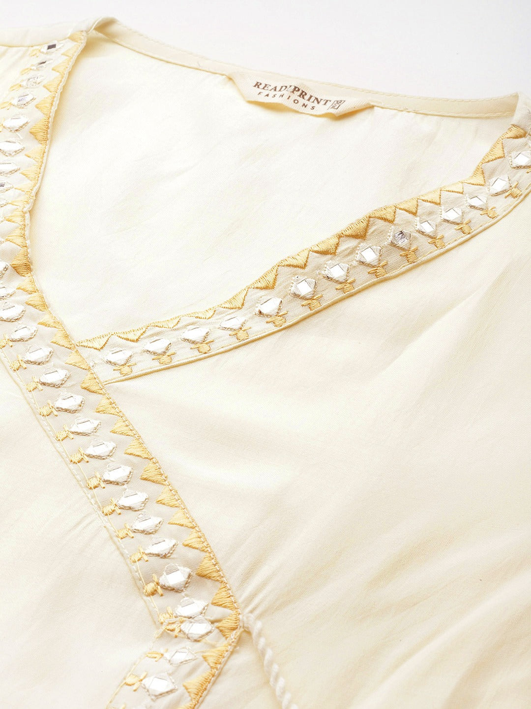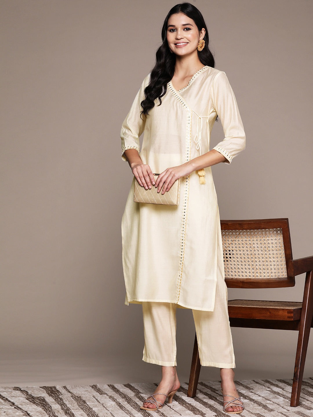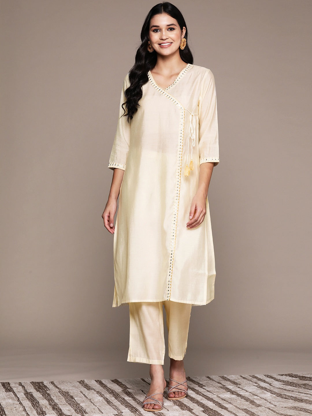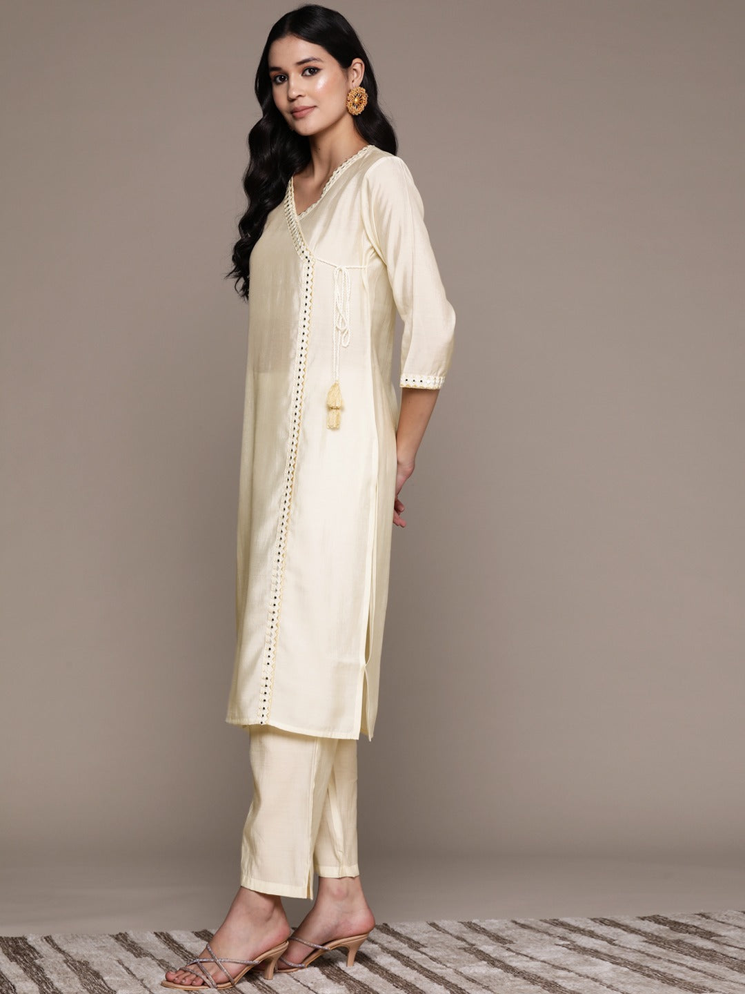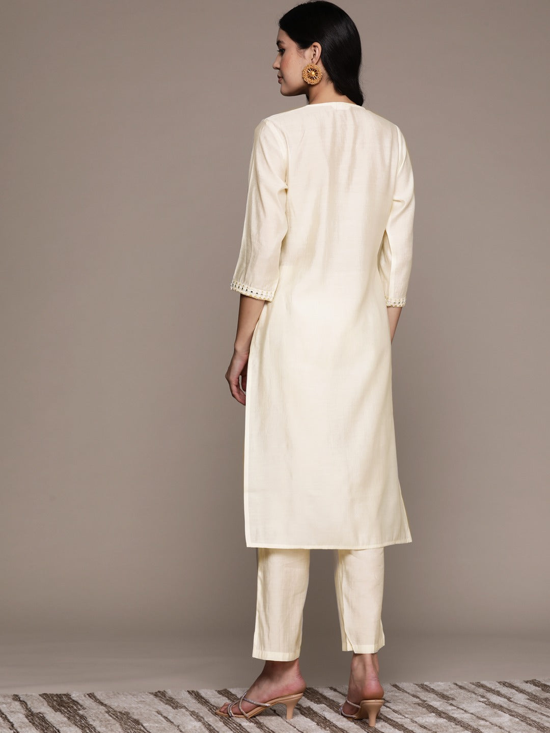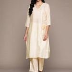 Straight Style Silk Fabric Cream Color Kurta And Bottom