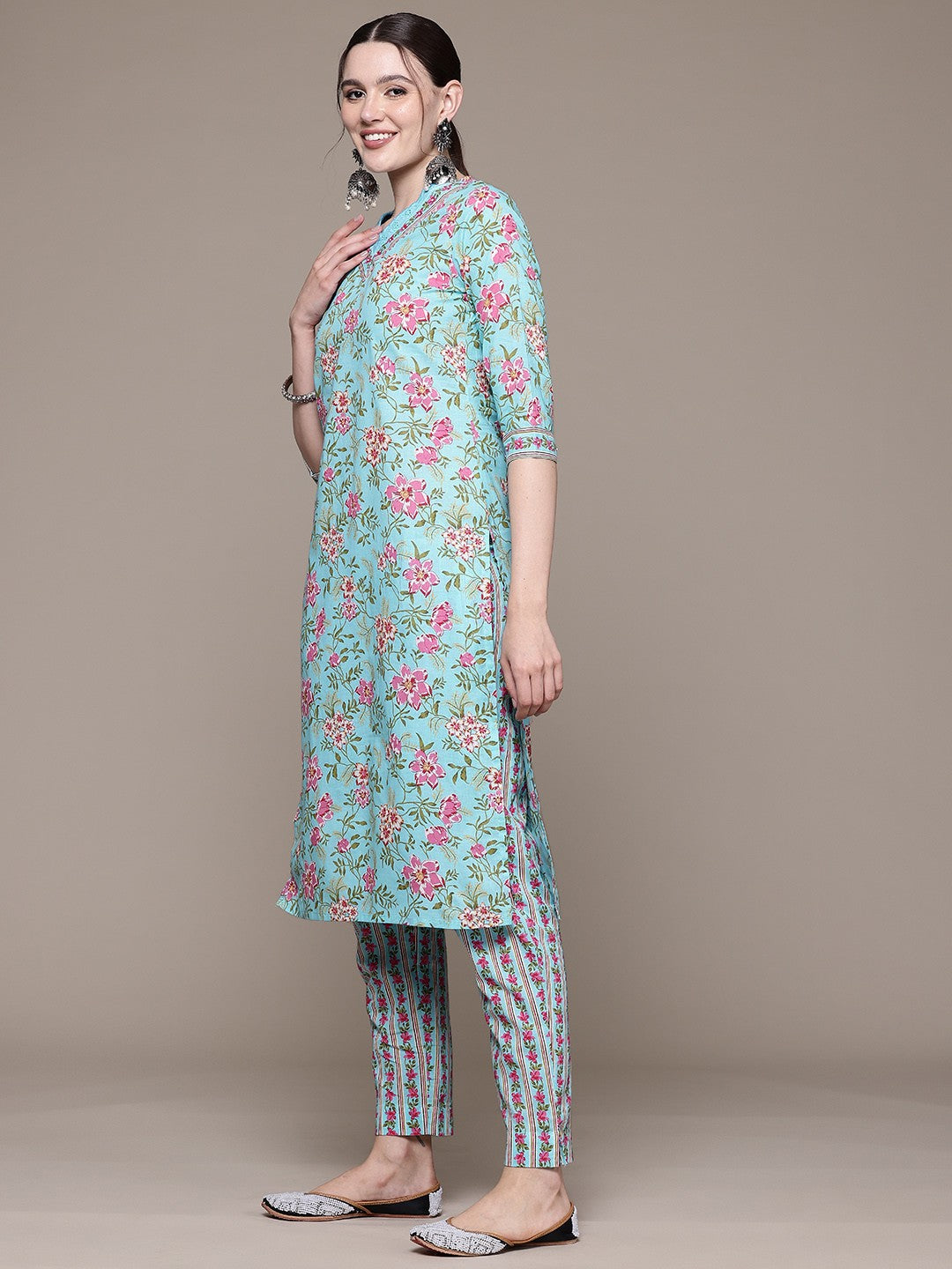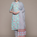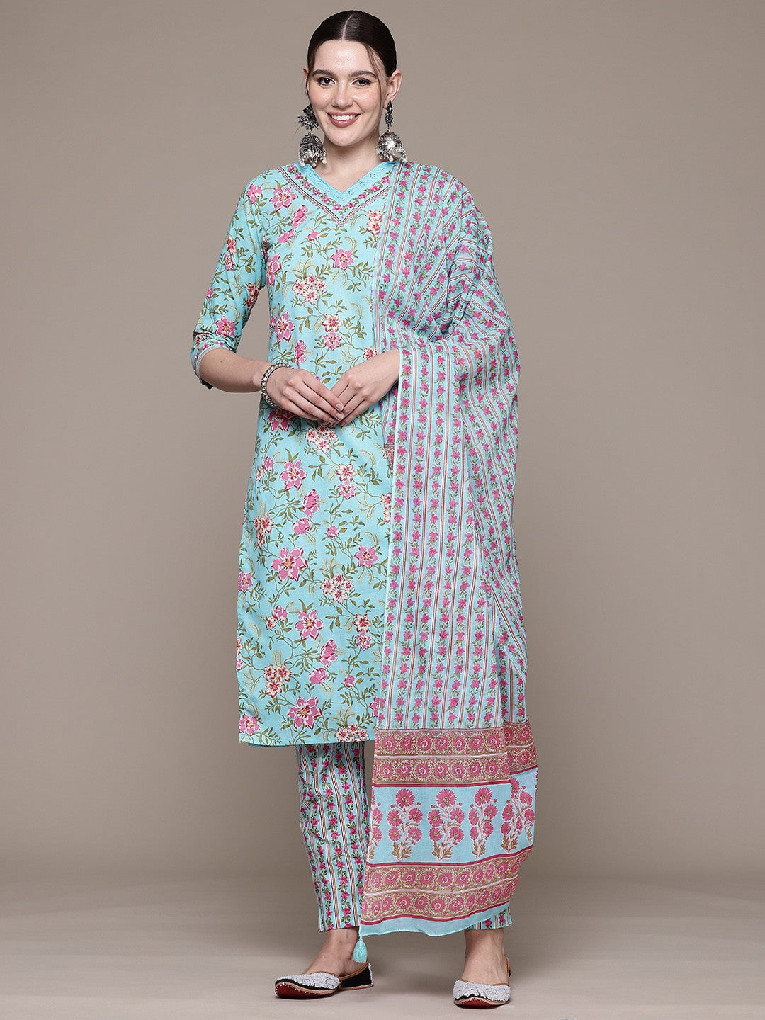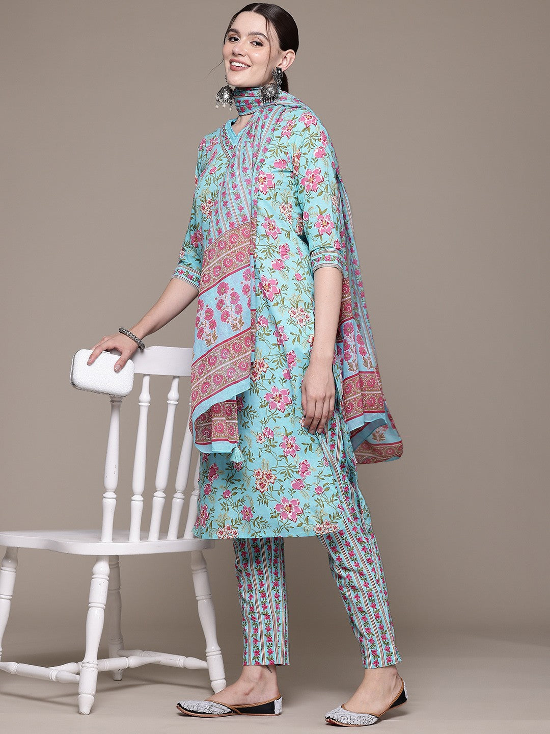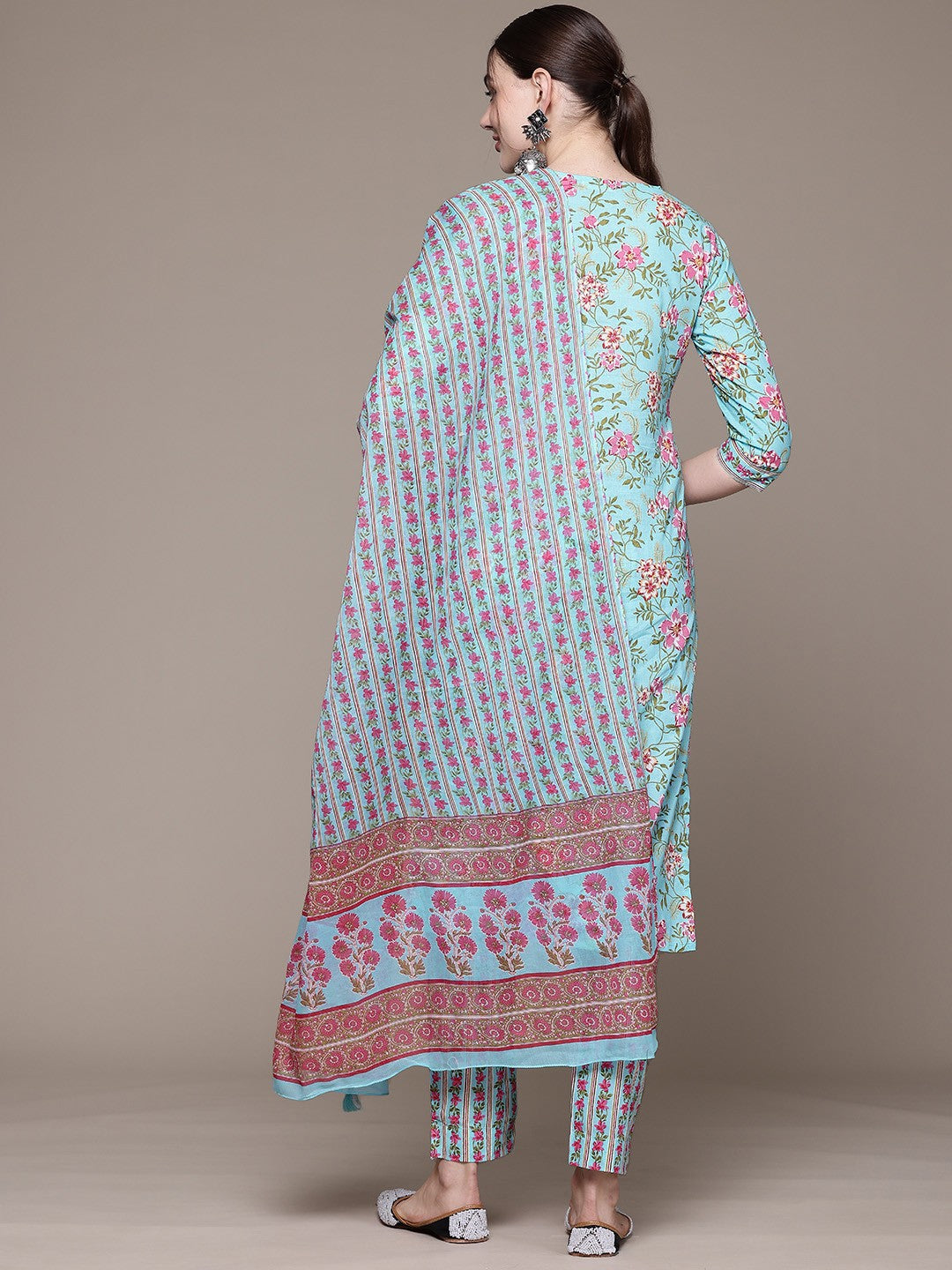 Straight style Cotton fabric Blue color kurta with Bottom and Dupatta