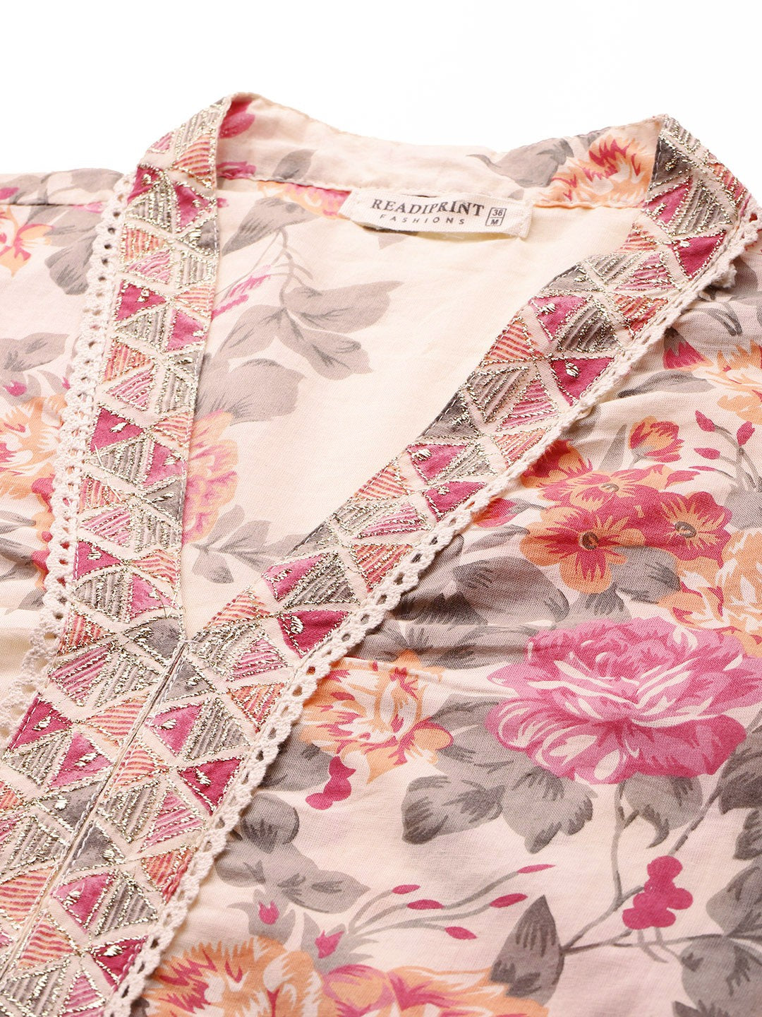 Straight style Cotton fabric Multi color kurta with Bottom and Dupatta