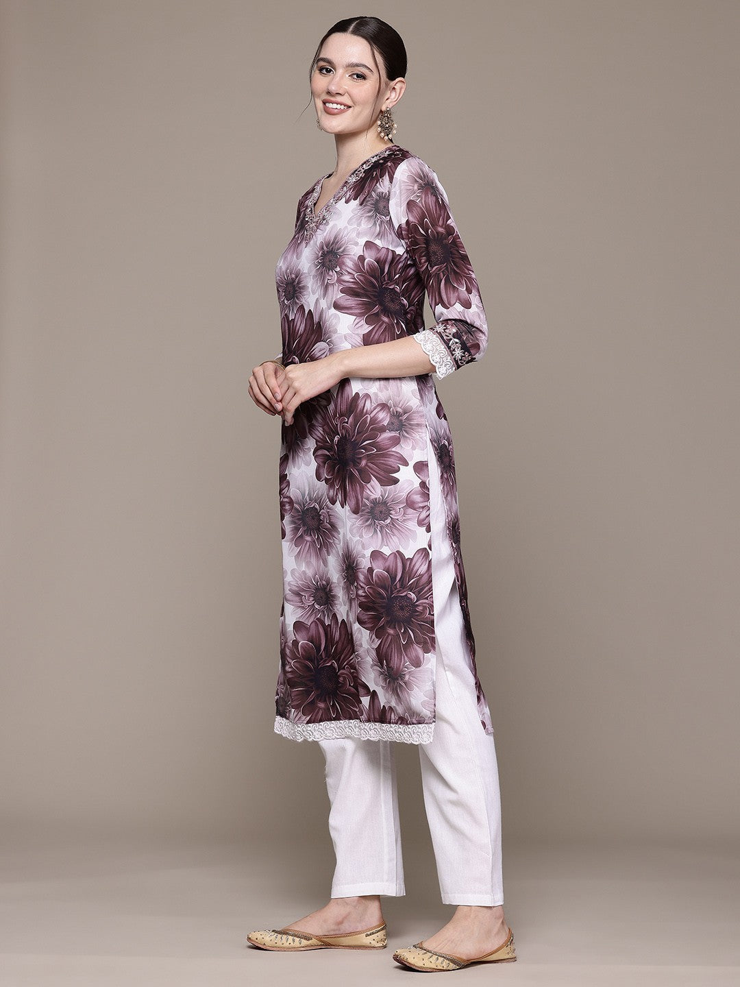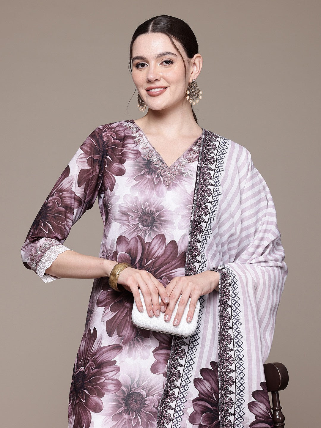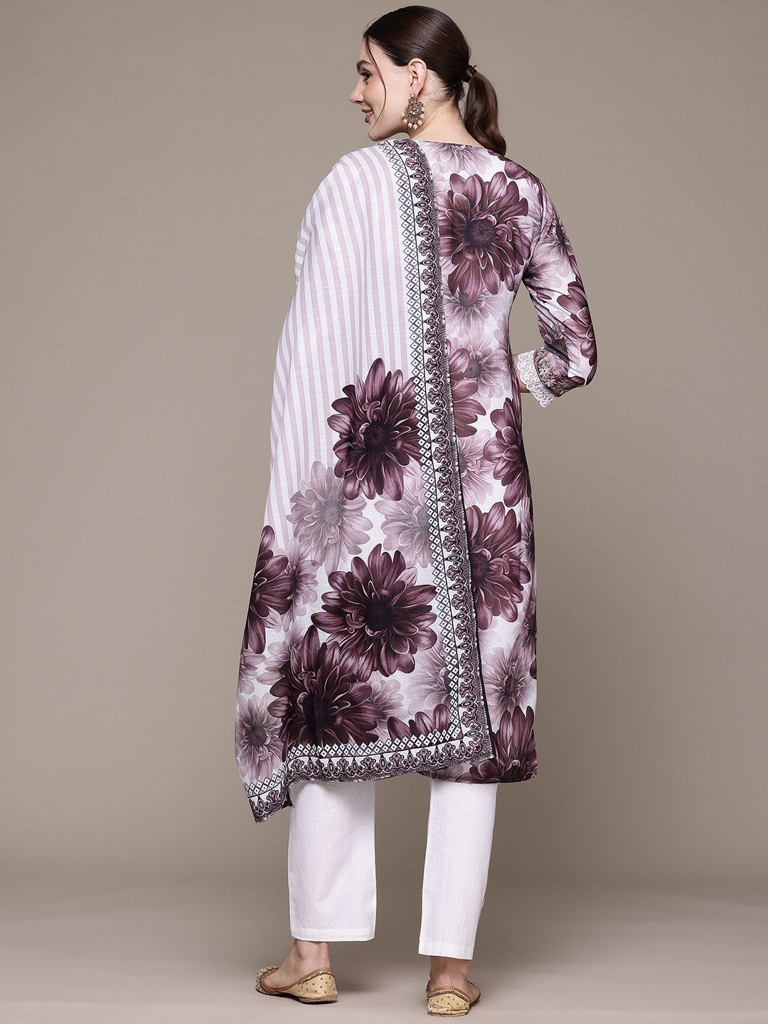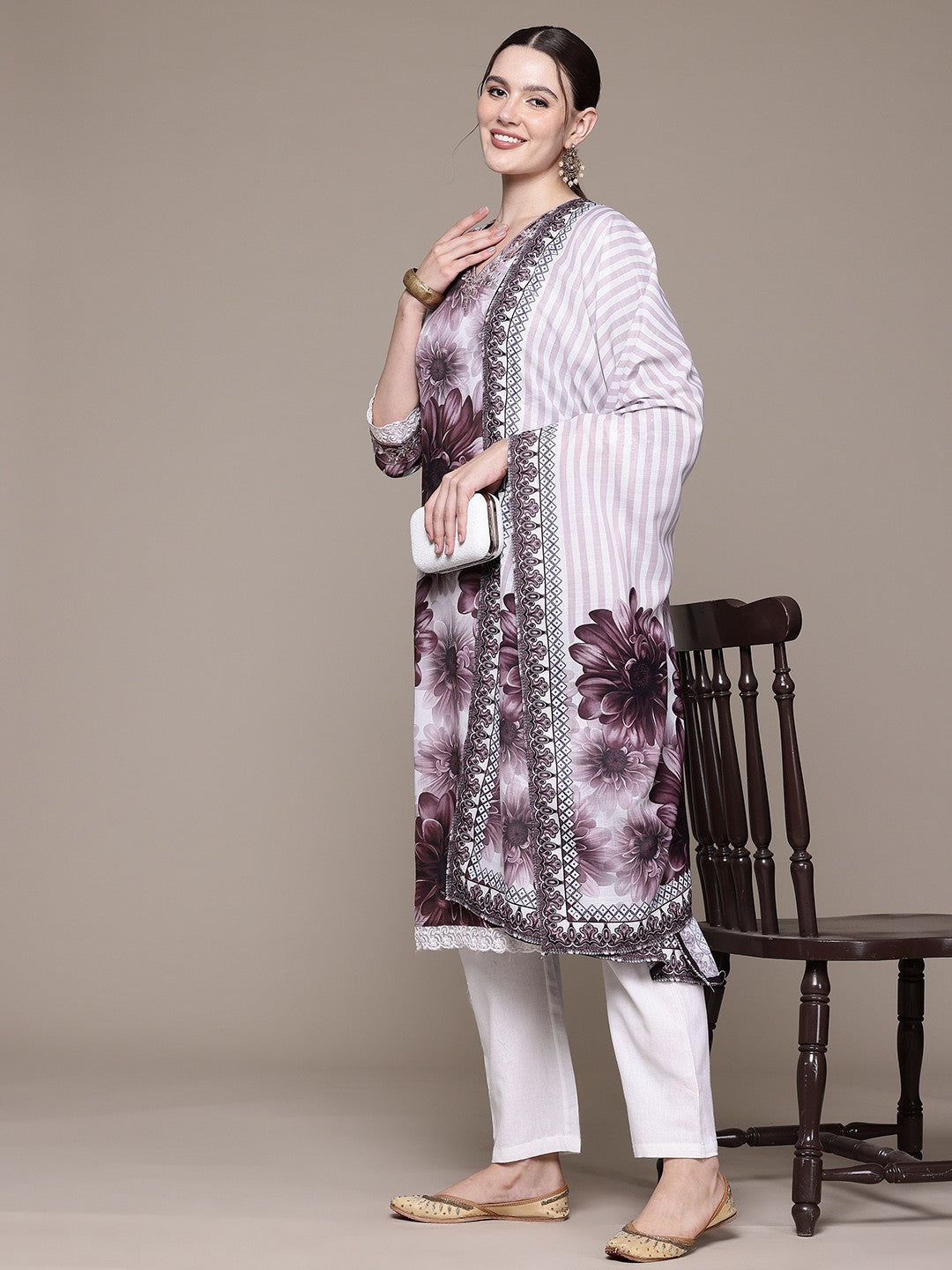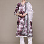 Straight style Linen fabric Violet color kurta with Bottom and Dupatta