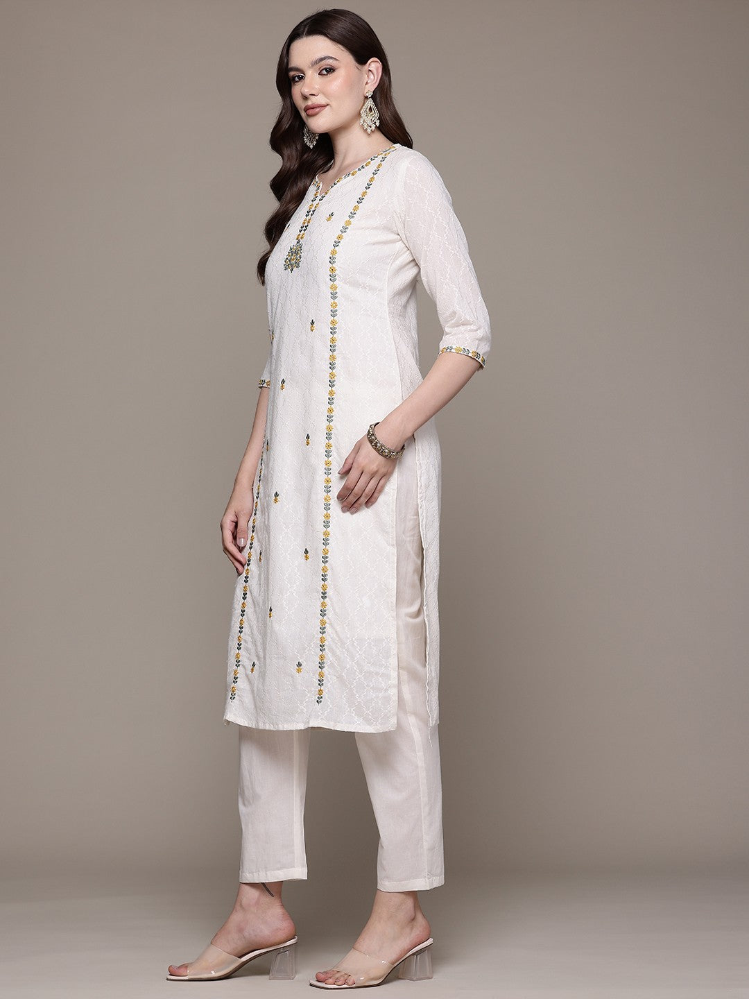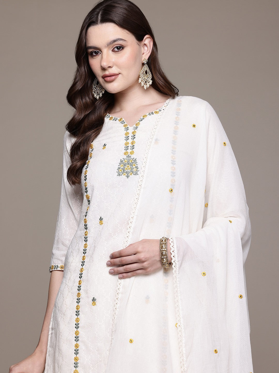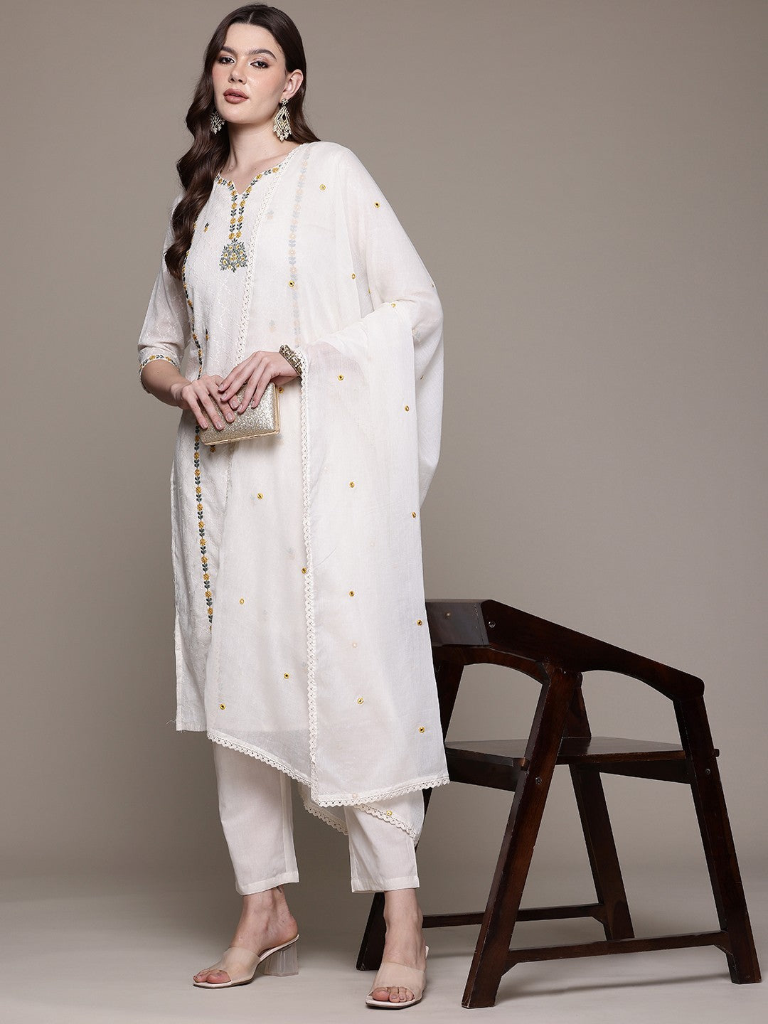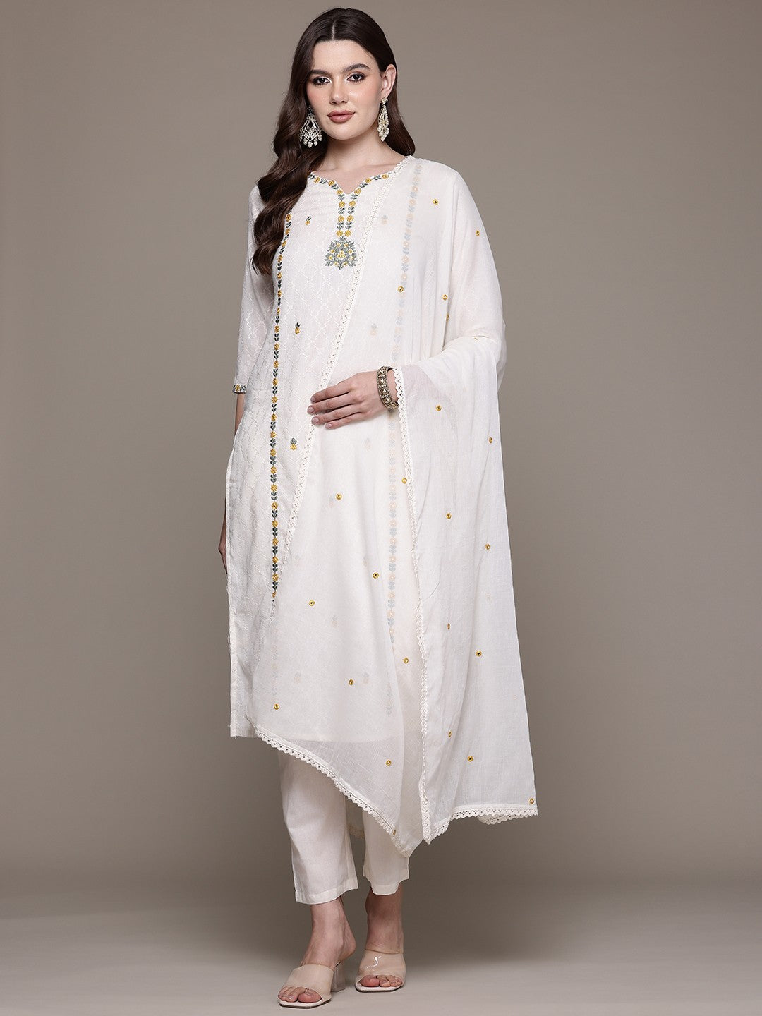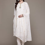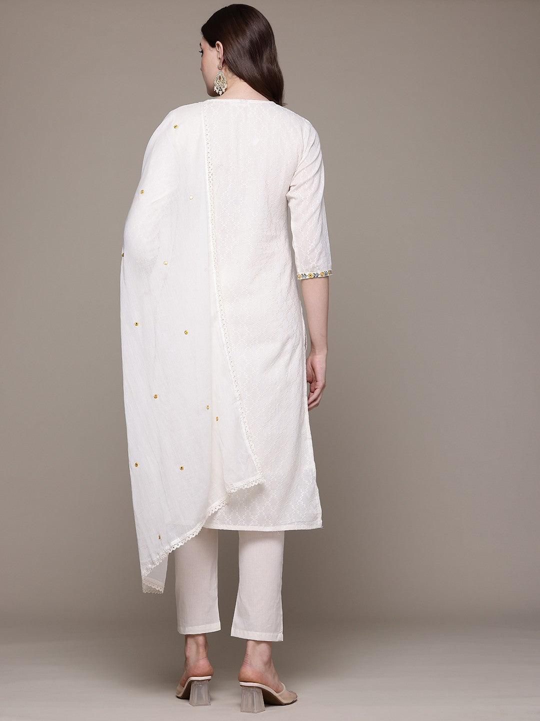 Straight style Cotton fabric Off White color kurta with Bottom and Dupatta