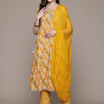 Flared style Rayon fabric Mustard color kurta with Bottom and Dupatta