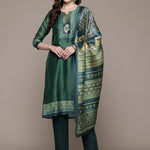 Straight style Silk fabric Green color kurta with Bottom and Dupatta