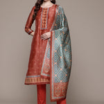 Straight style Silk fabric Red color kurta with Bottom and Dupatta