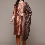 Straight style Silk fabric Rust color kurta with Bottom and Dupatta