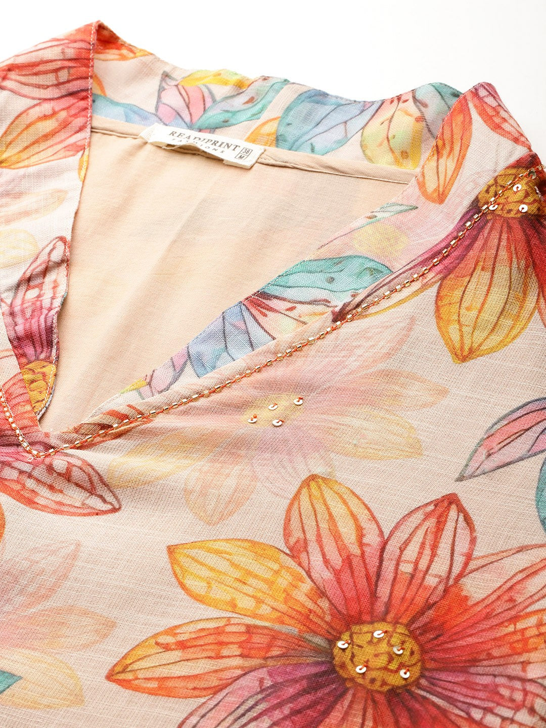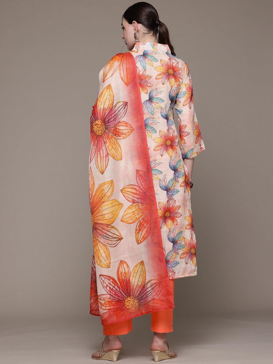 Straight style Cotton fabric Beige color kurta with Bottom and Dupatta