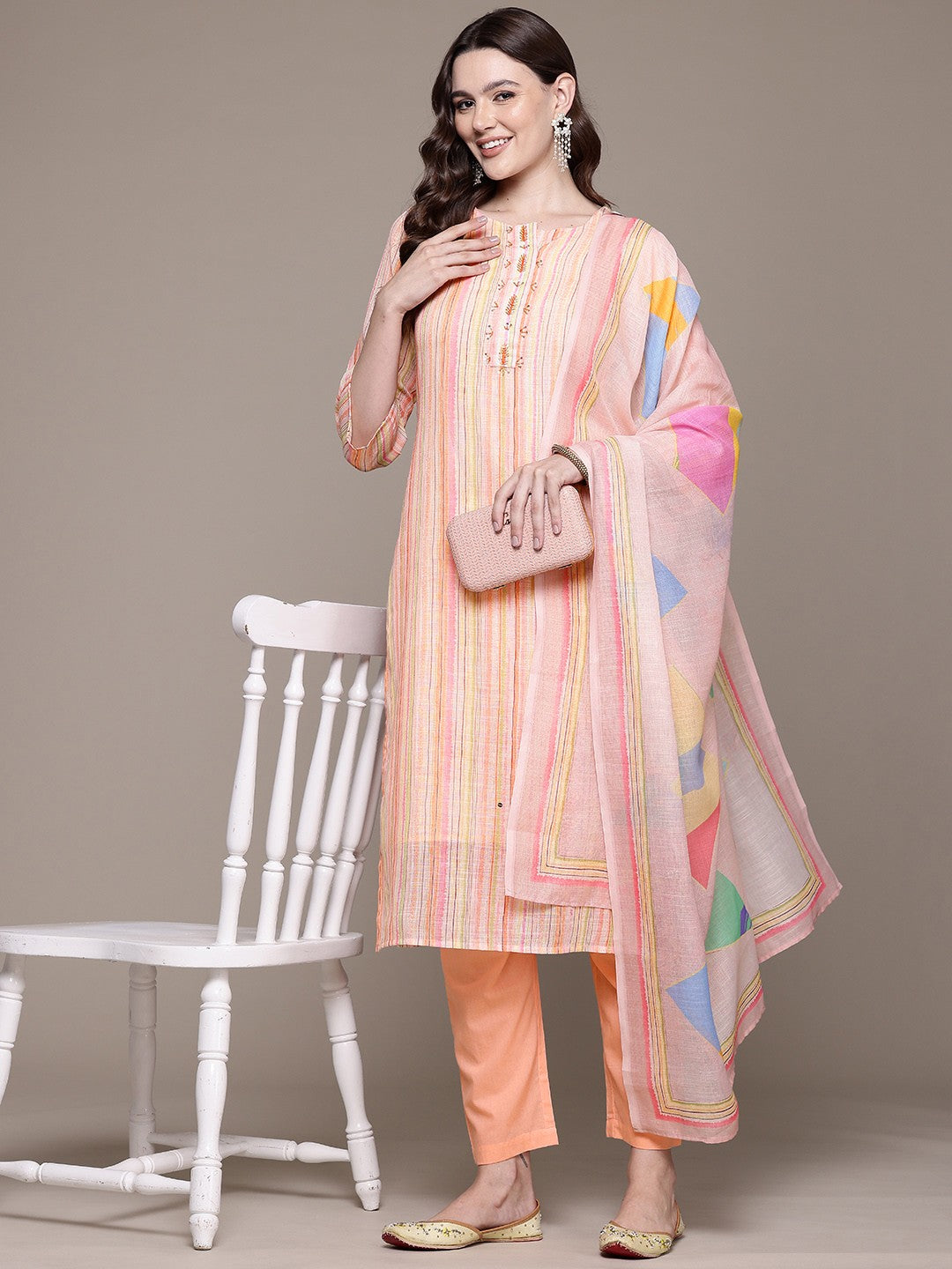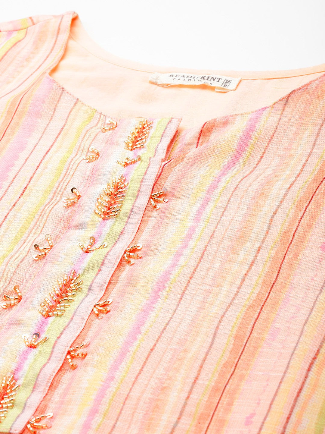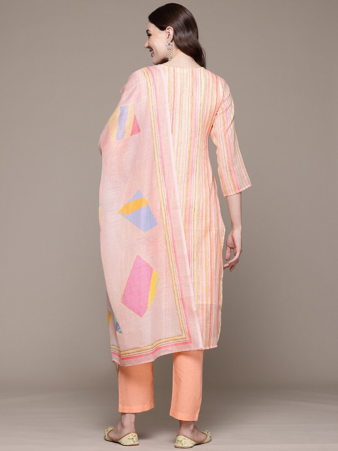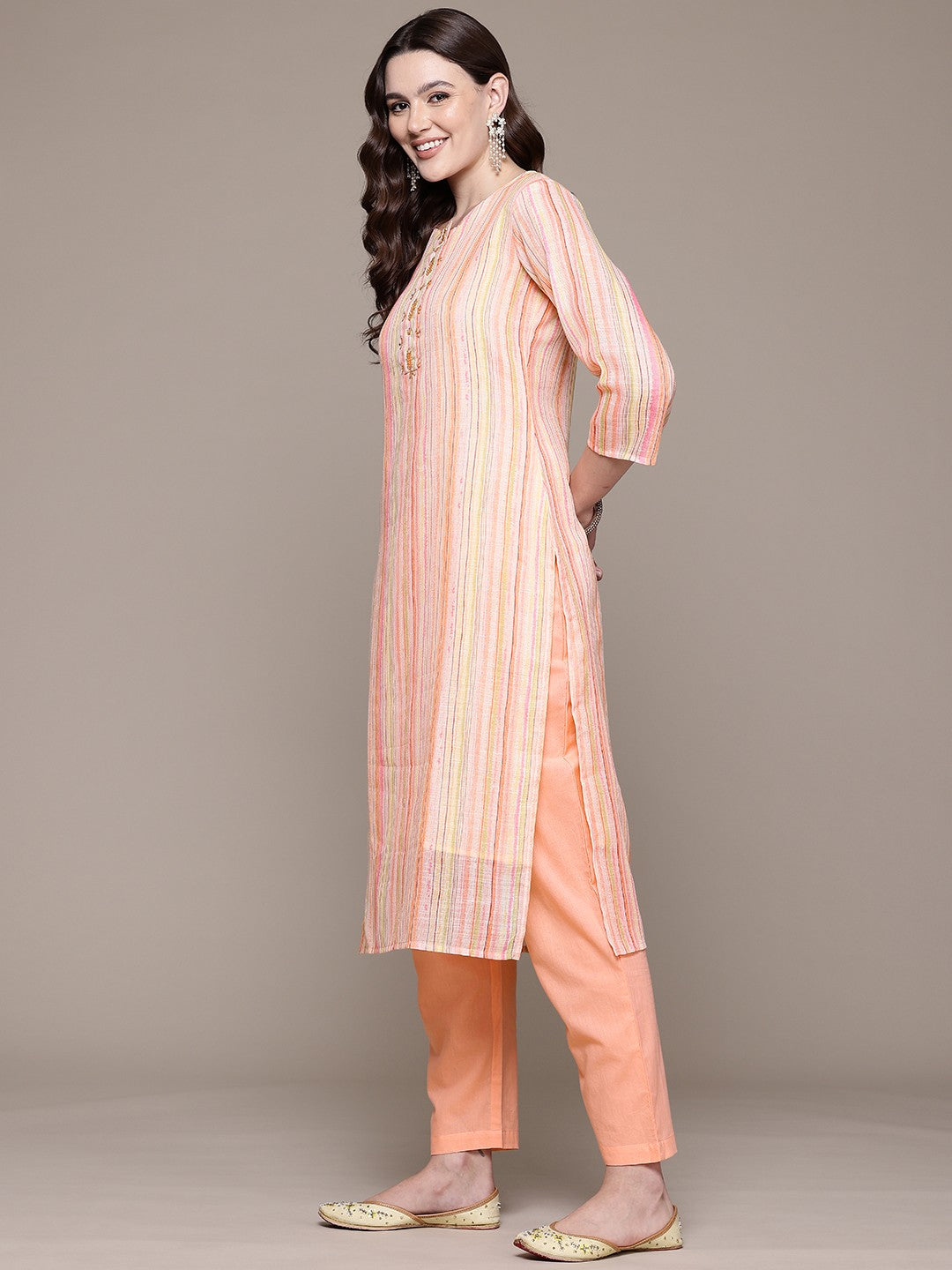 Straight style Cotton fabric Peach color kurta with Bottom and Dupatta