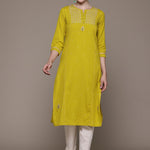 Straight style Cotton fabric Mustard color kurta with Bottom