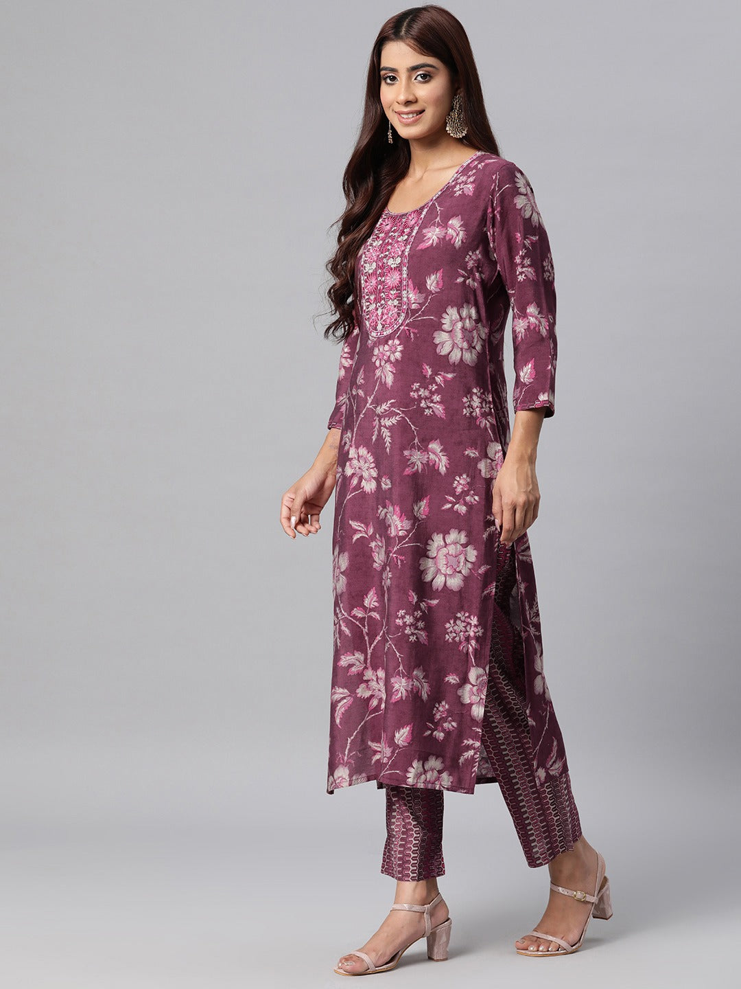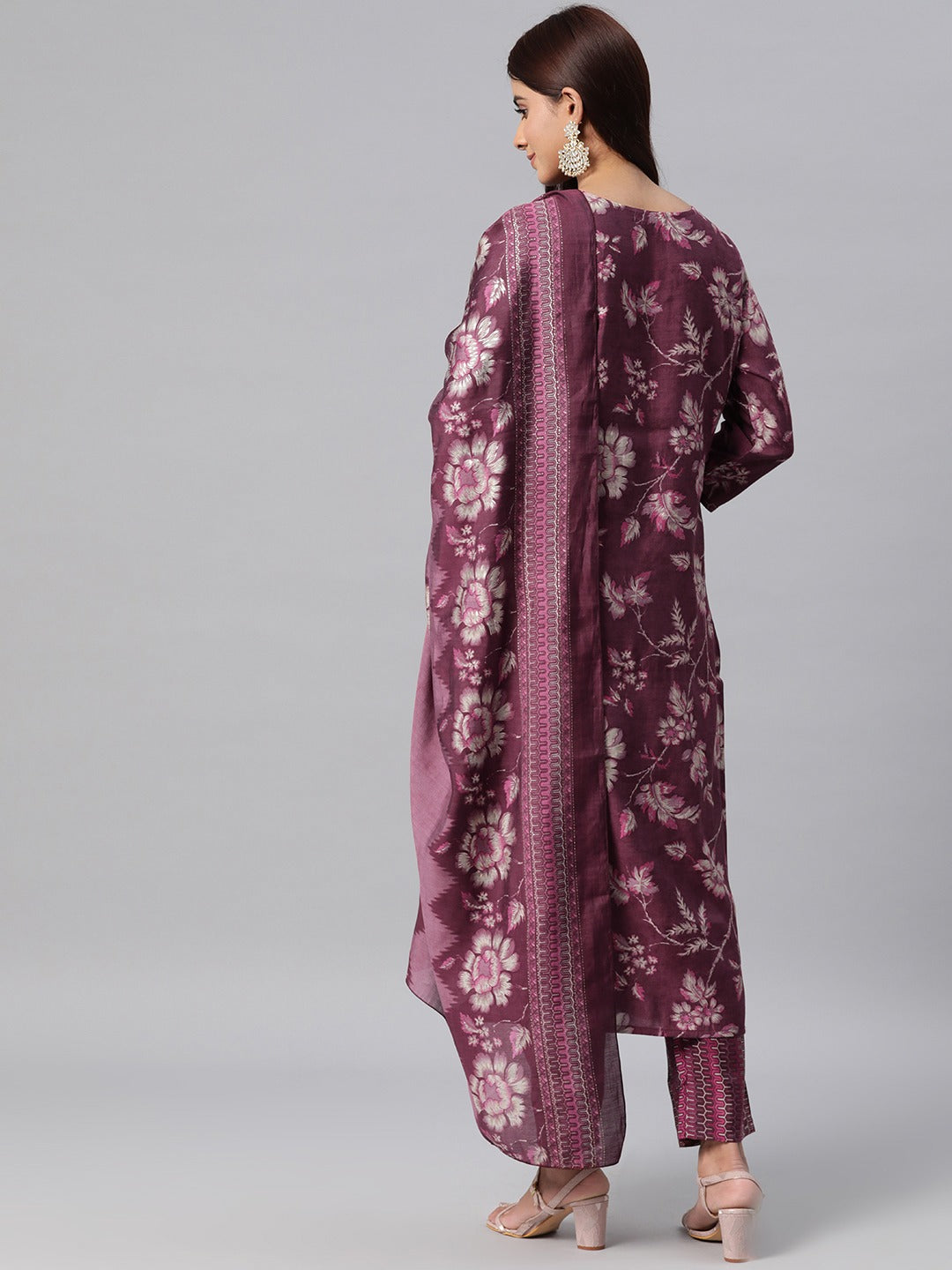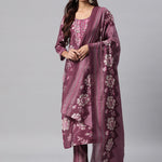 Silk Floral Straight Kurta Pant & Dupatta
