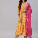 Cotton Floral Anarkali Kurta Pant & Dupatta
