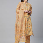 Straight Style Cotton Fabric Mustard Color Printed Kurti With Salwar And Dupatta