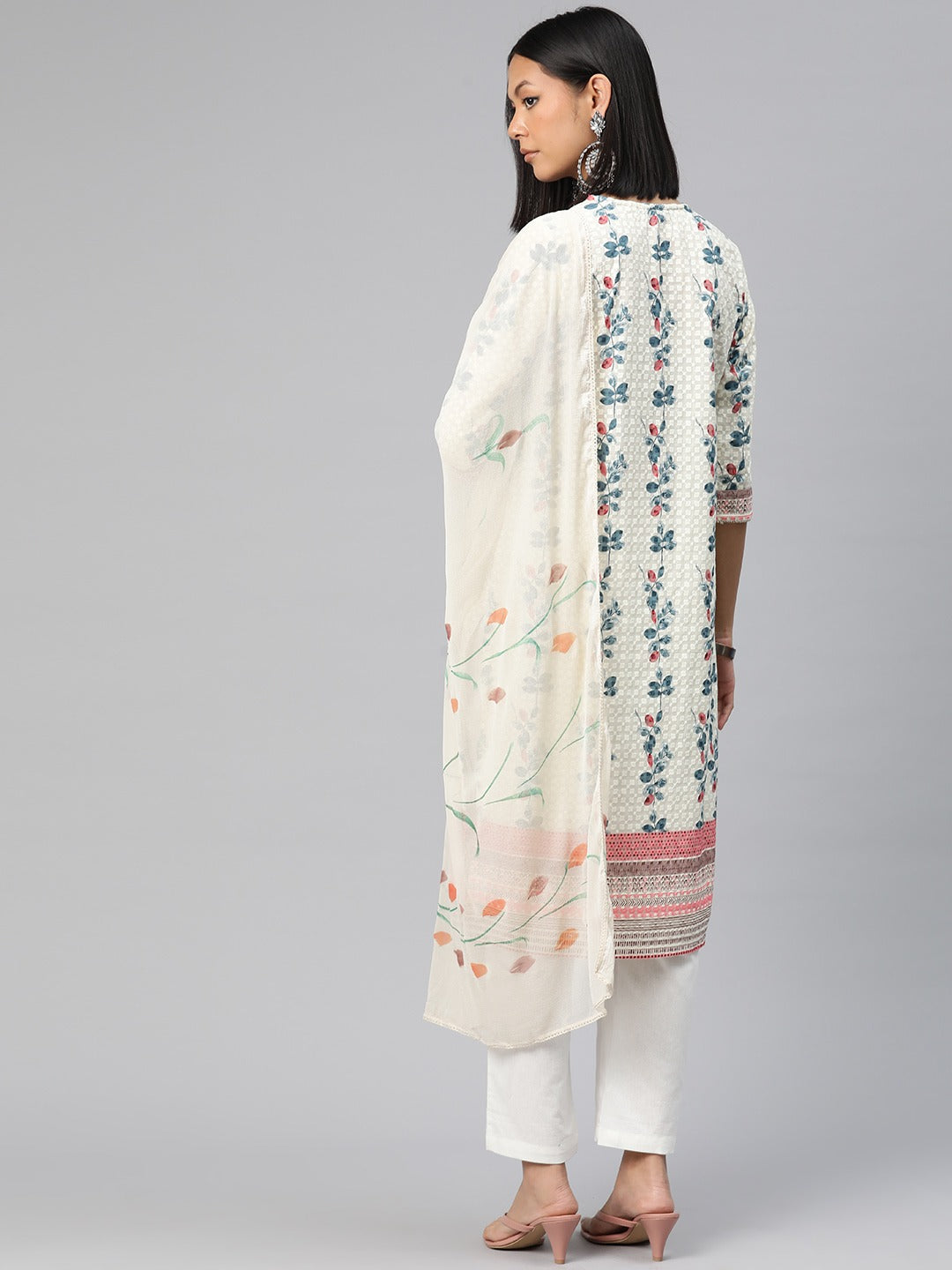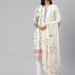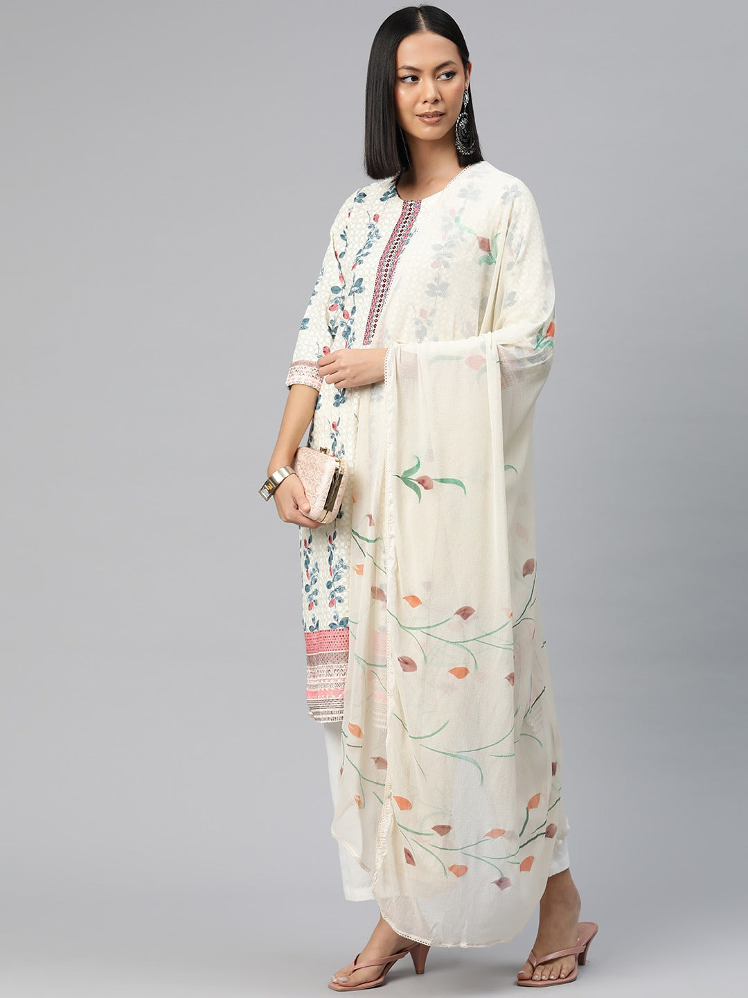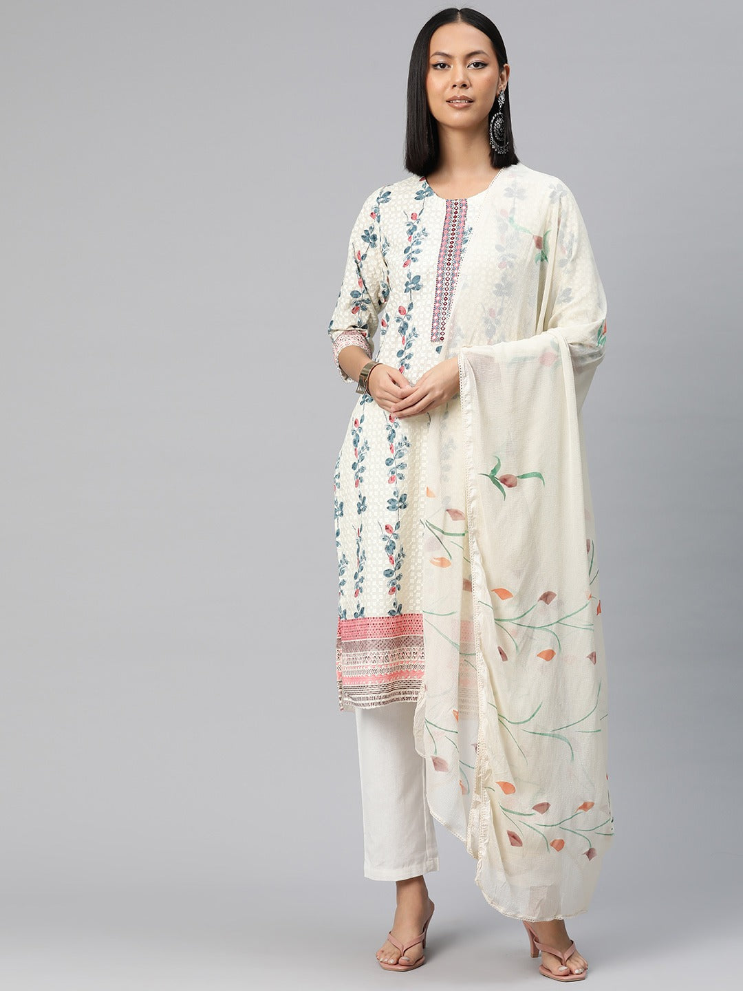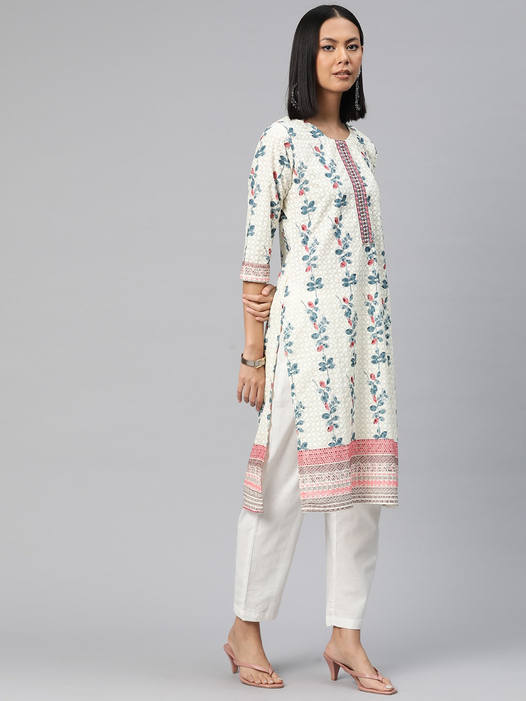 Straight Style Cotton Fabric Blue Color Floral Printed, Embroidered Kurti With Palazzo And Dupatta With Lace Work