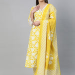 Straight Style Cotton Fabric Mustard Color Floral Printed Kurti With Palazzo And Dupatta