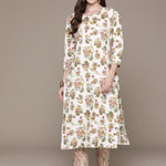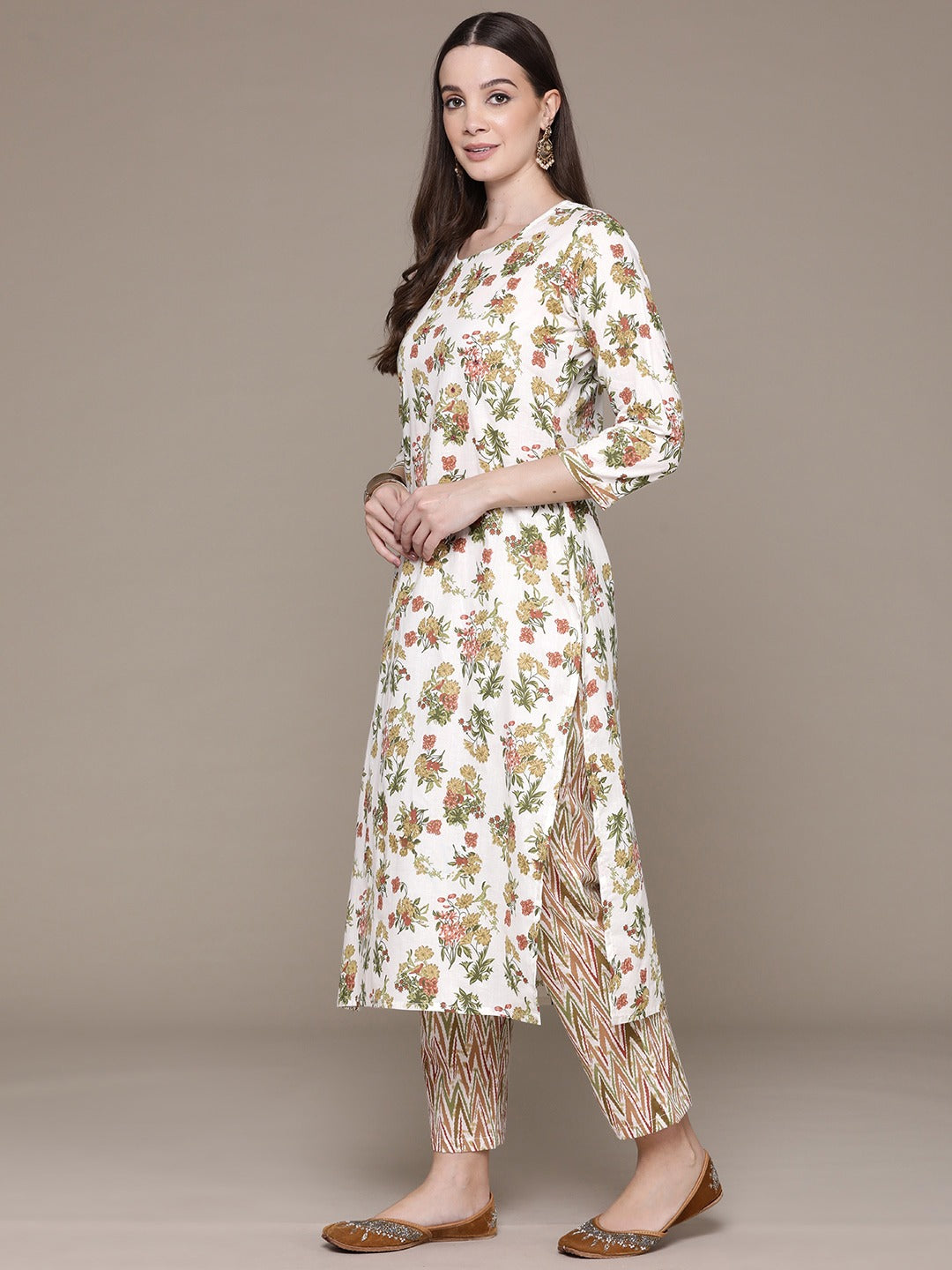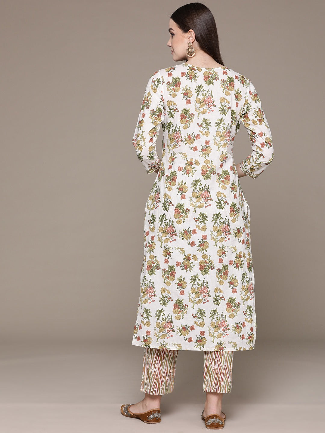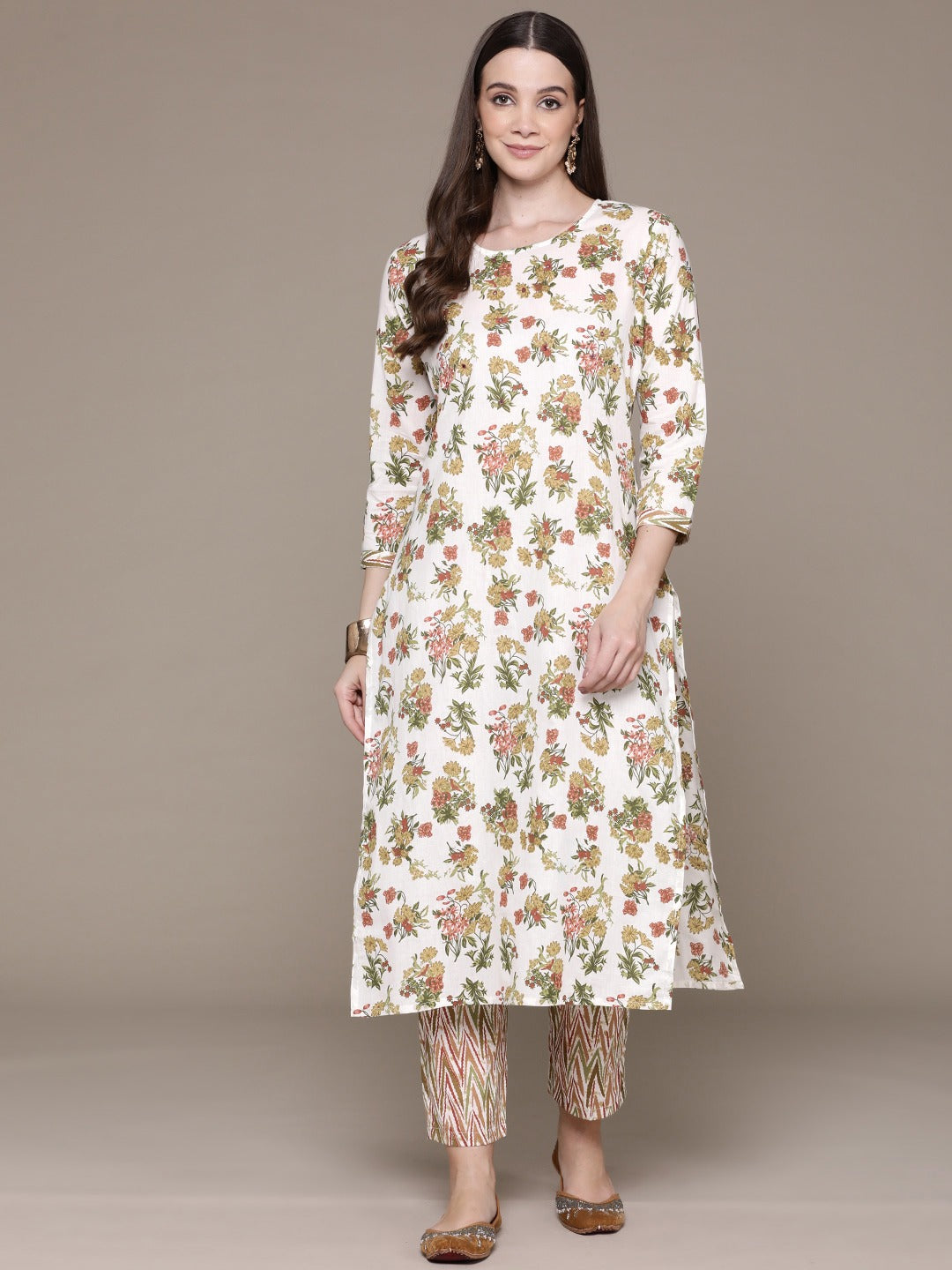 Straight Style Cotton Fabric Green Color Floral Printed Kurti With Palazzo