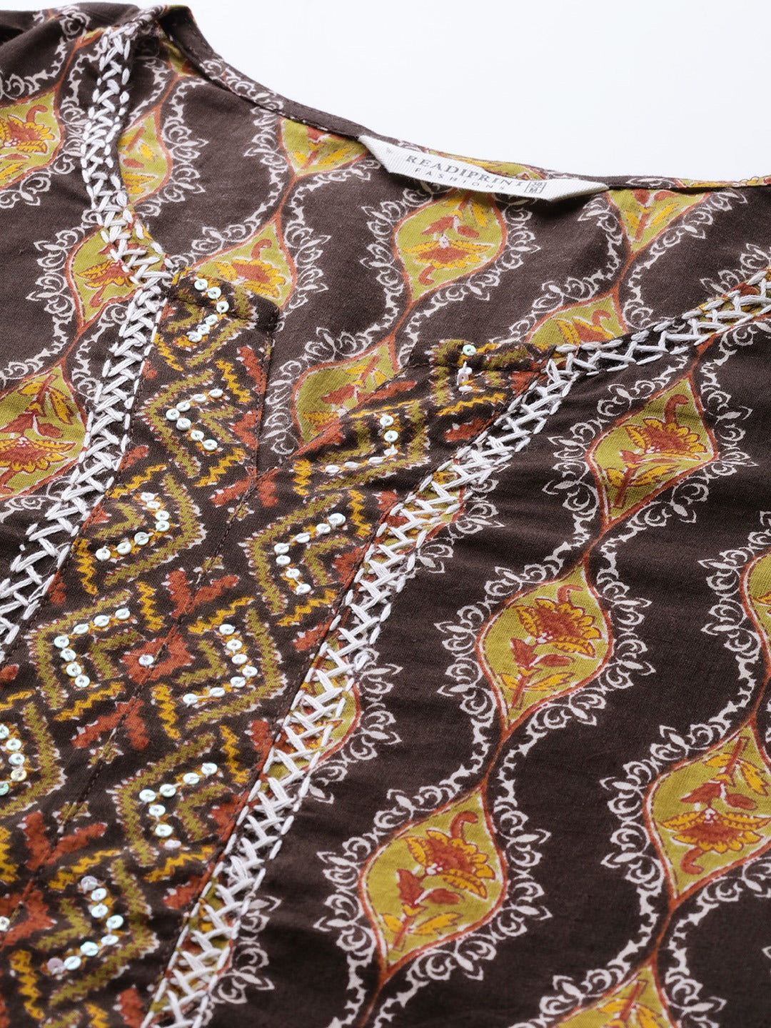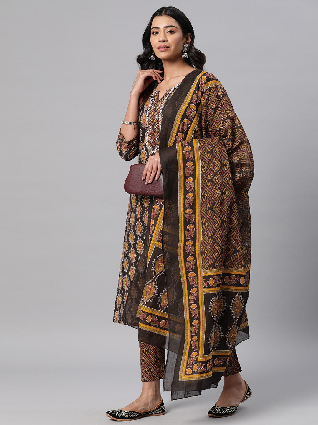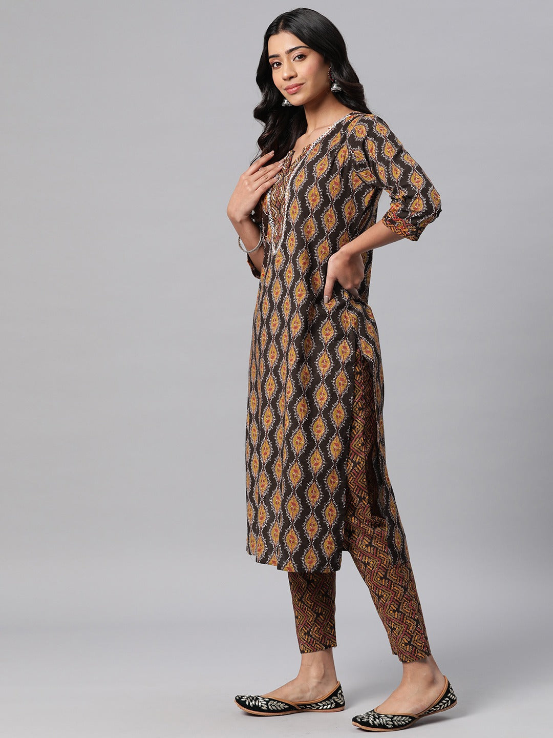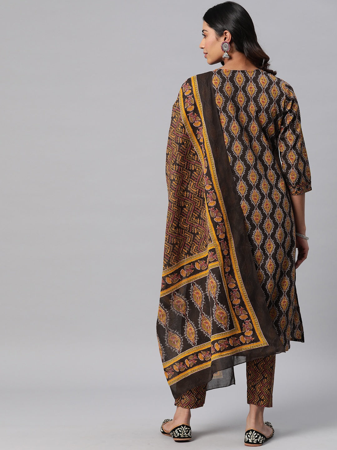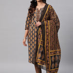 Straight Style Cotton Fabric Black Color Floral Printed Kurti With Palazzo And Dupatta