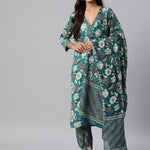 Cotton Printed Straight Kurta Salwar Dupatta Set (Sea Green)