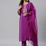 Pure Silk Floral Straight Kurta Pant & Dupatta