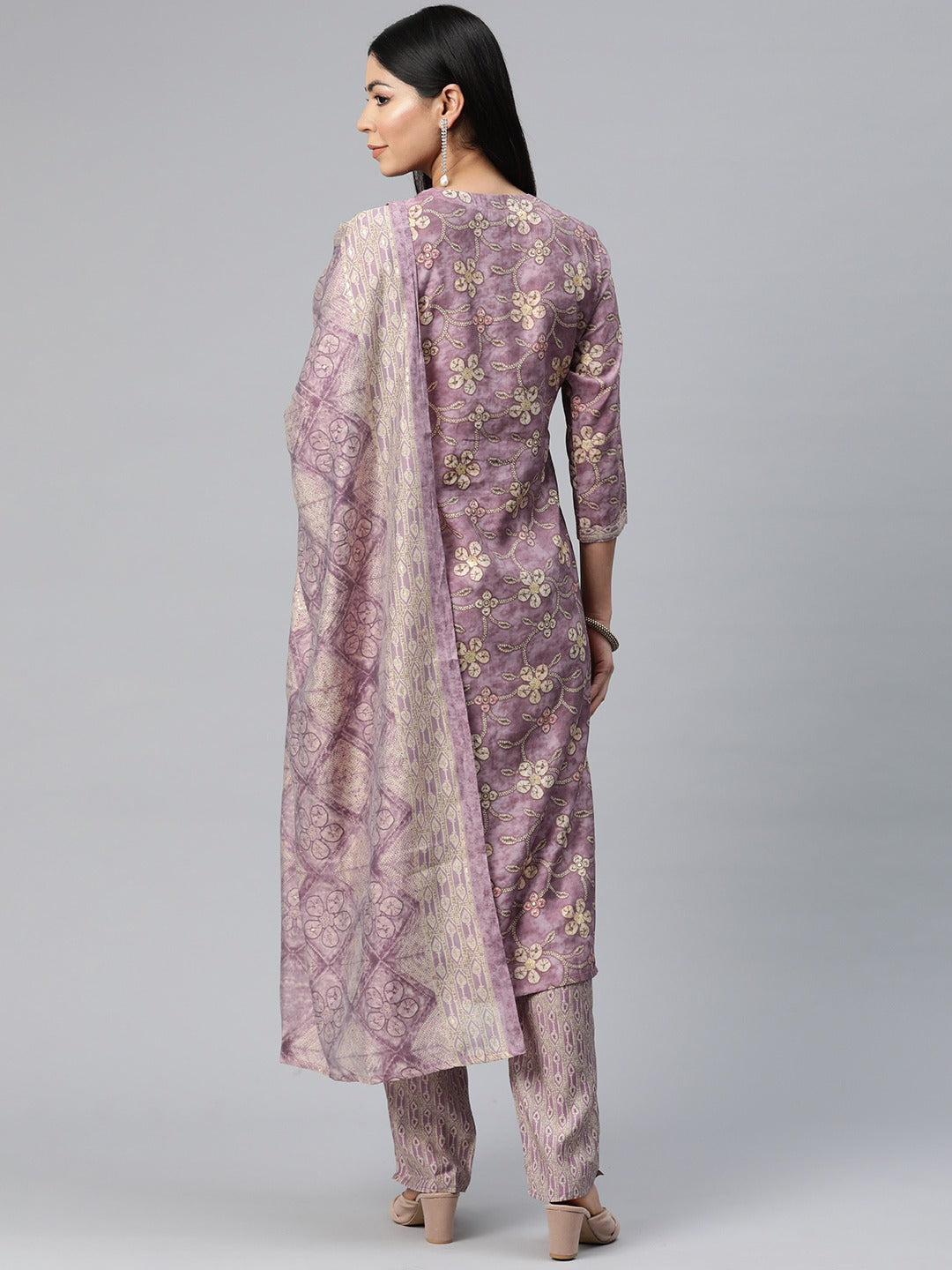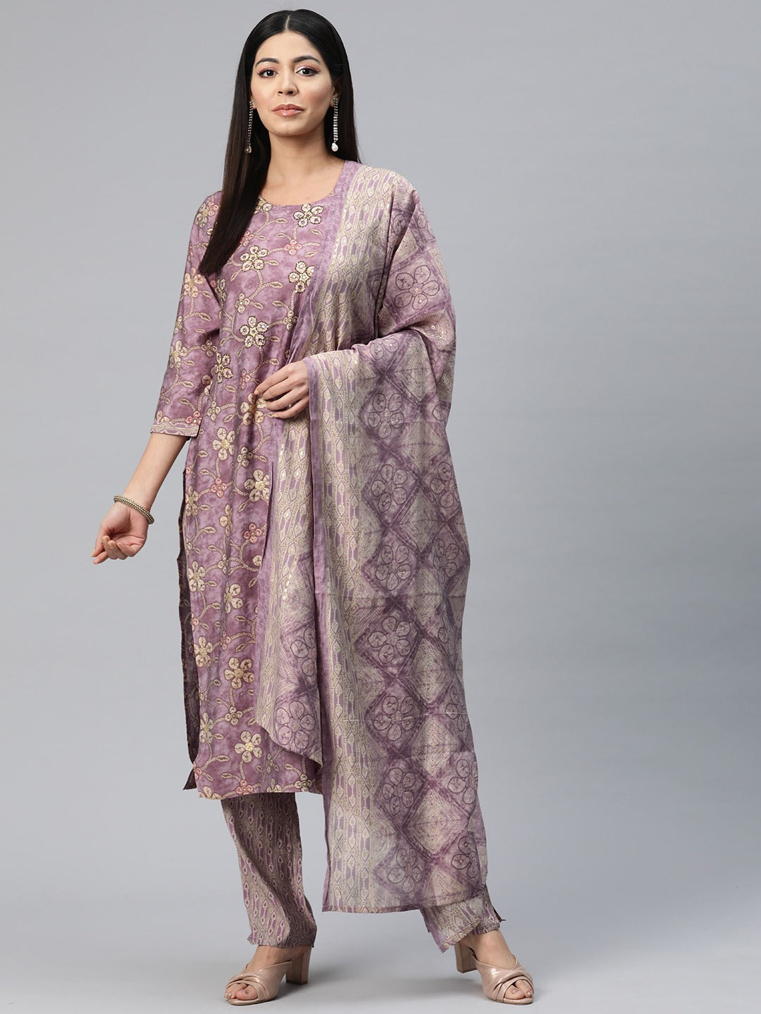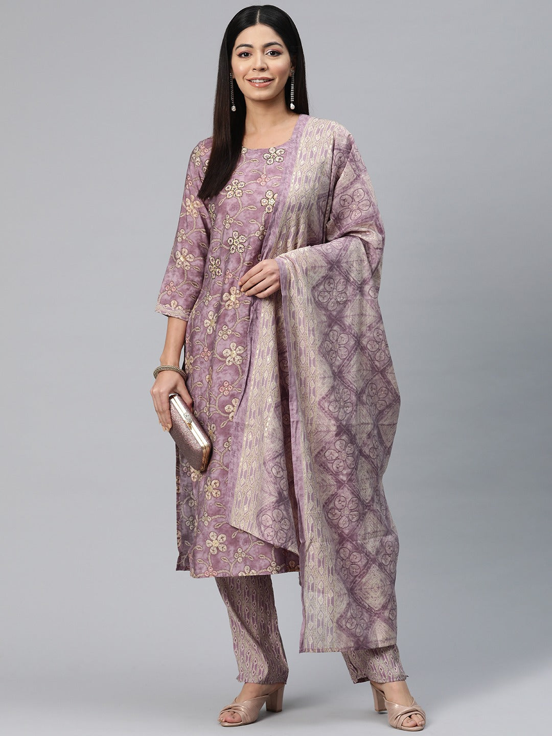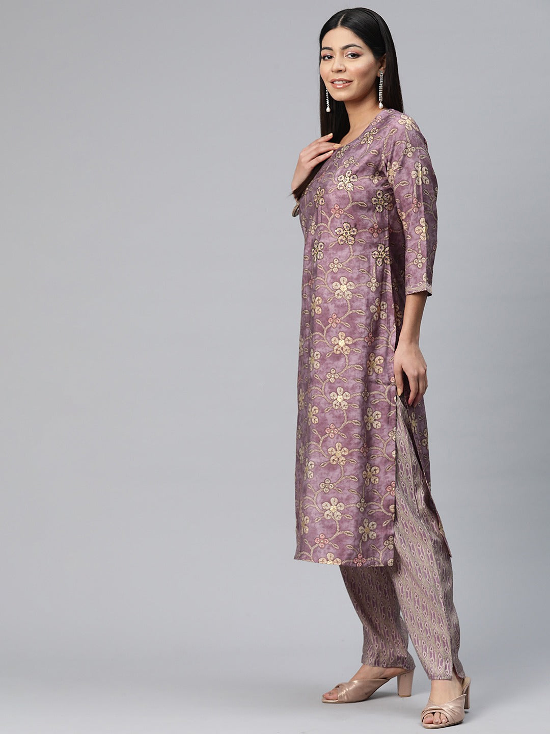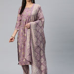 Straight Style Silk Fabric Mauve Color Printed Kurti With Palazzo And Dupatta With Printed Work