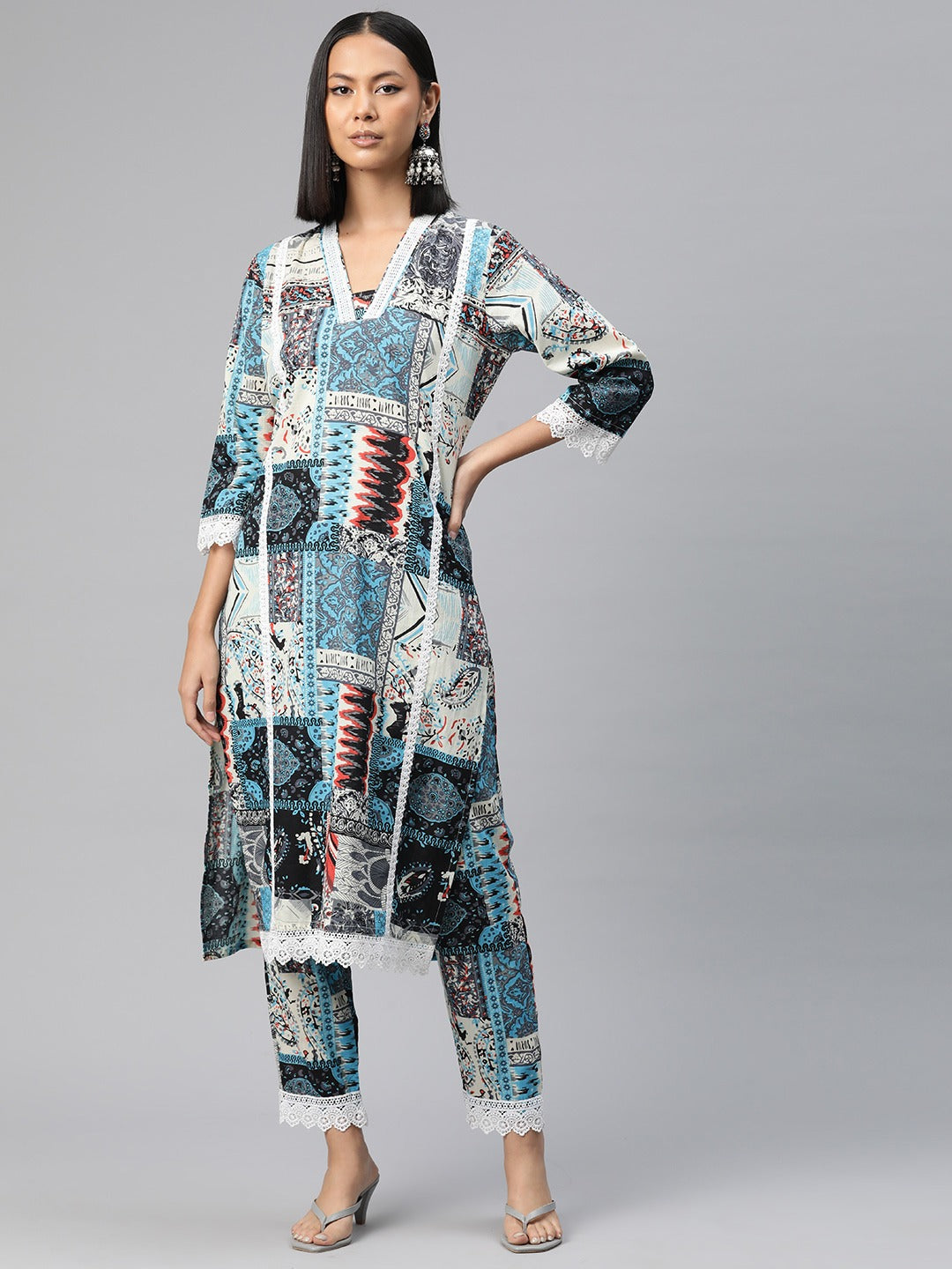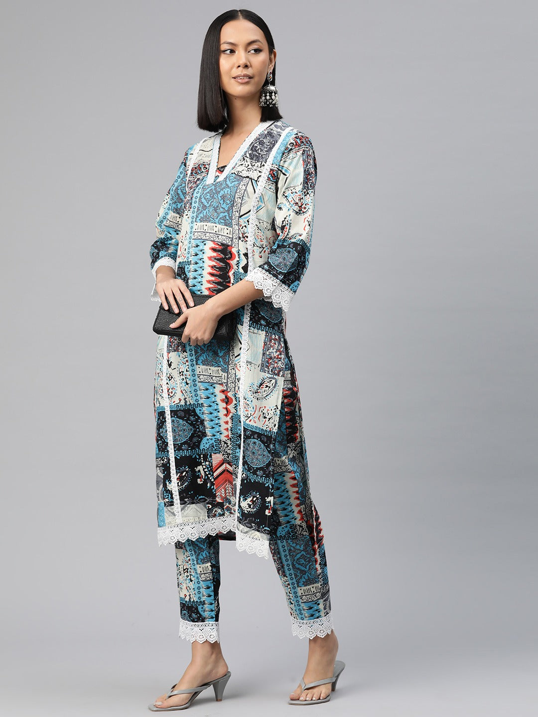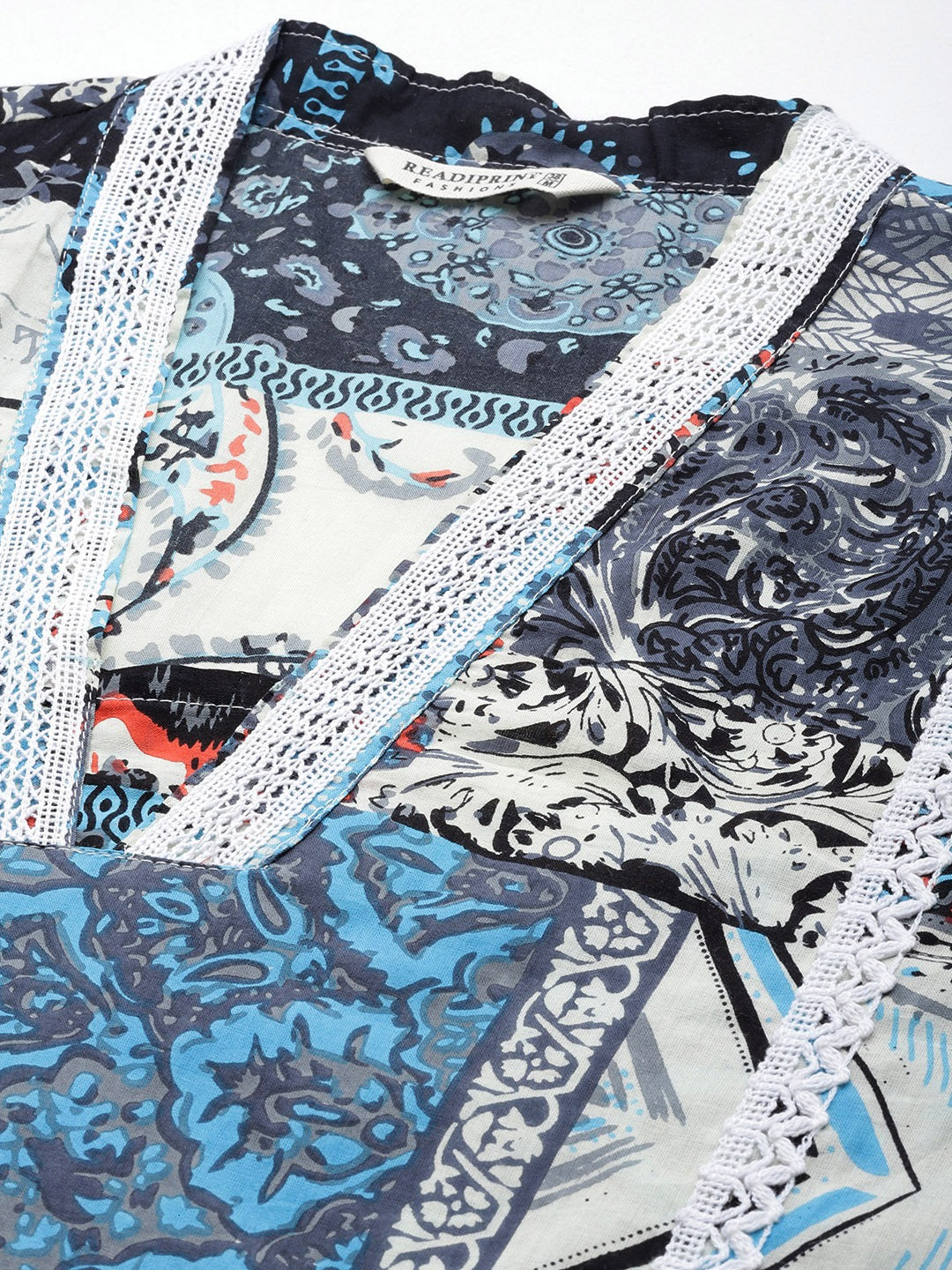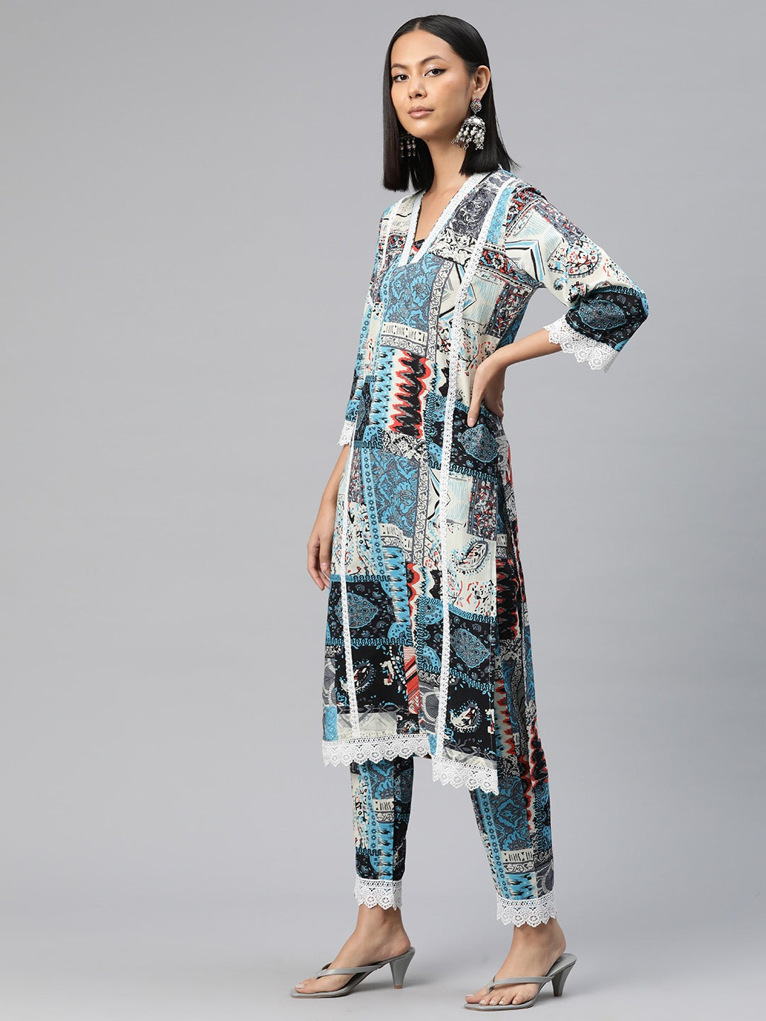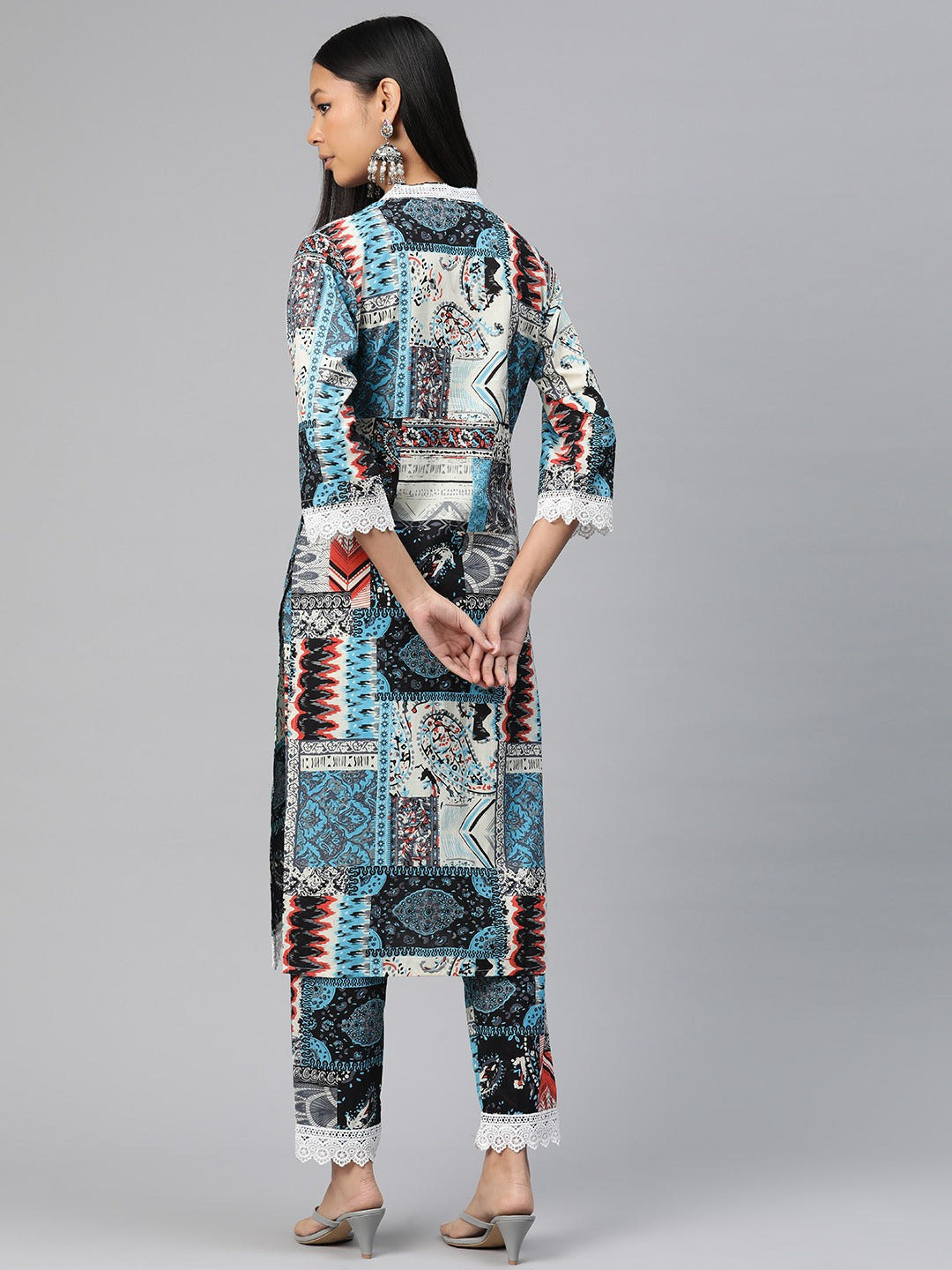 Straight Style Cotton Fabric Multi Color Printed Kurti With Palazzo