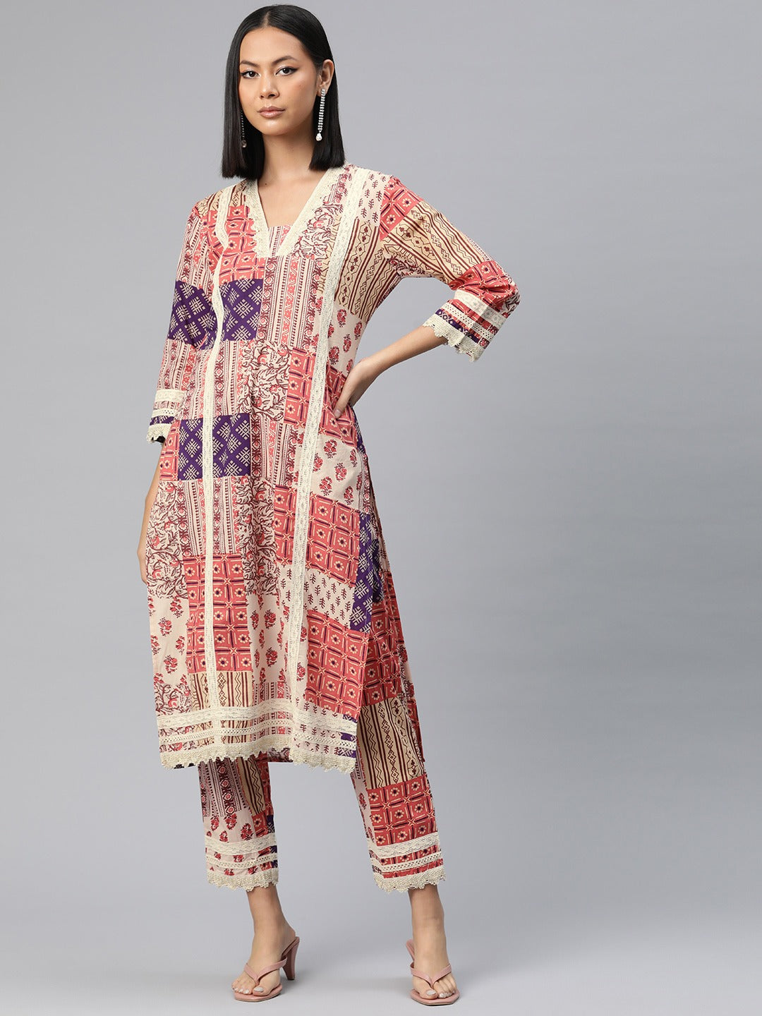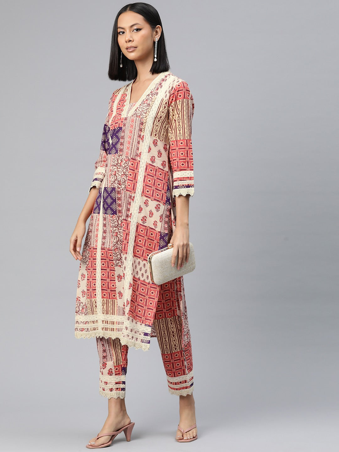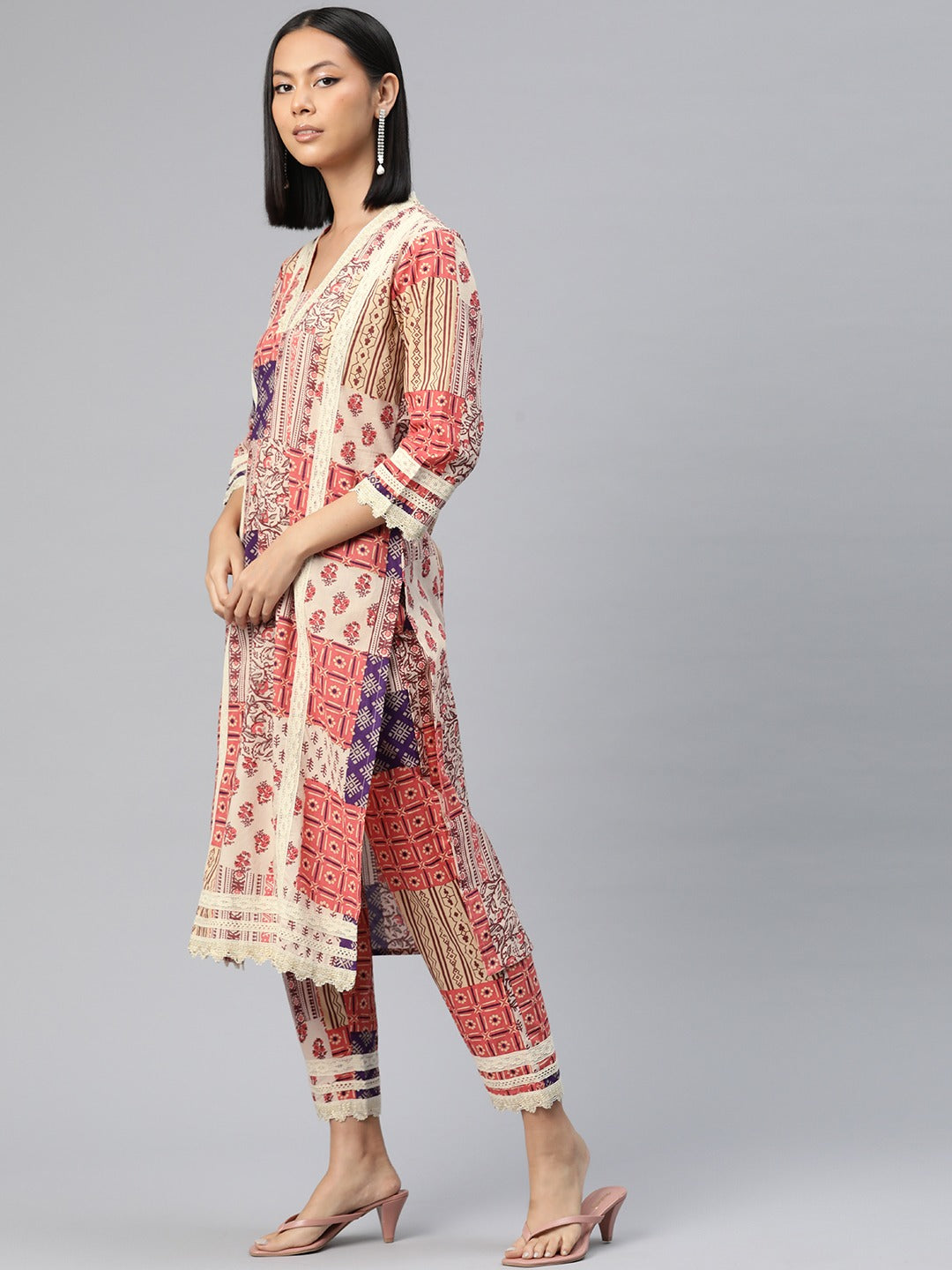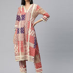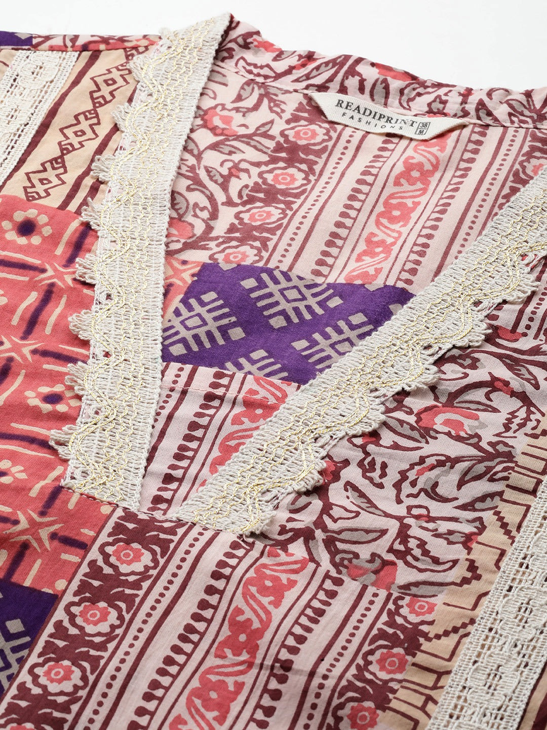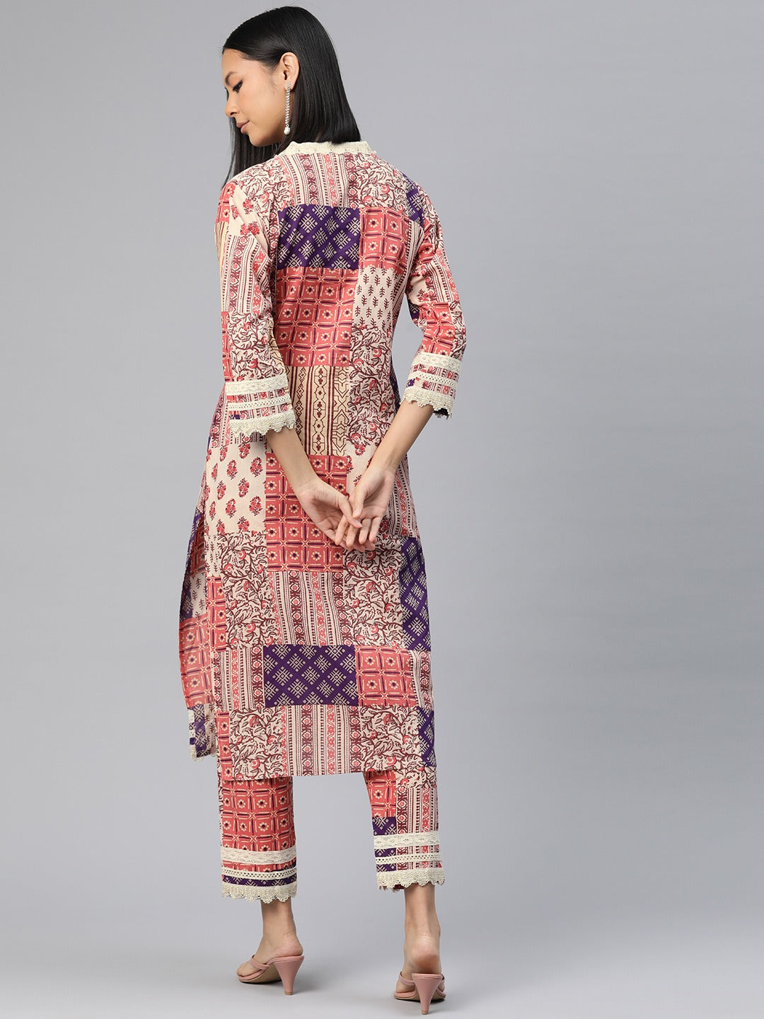 Straight Style Cotton Fabric Peach Color Printed Kurti With Palazzo