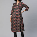 Straight Style Cotton Fabric Grey Color Printed Kurti With Salwar