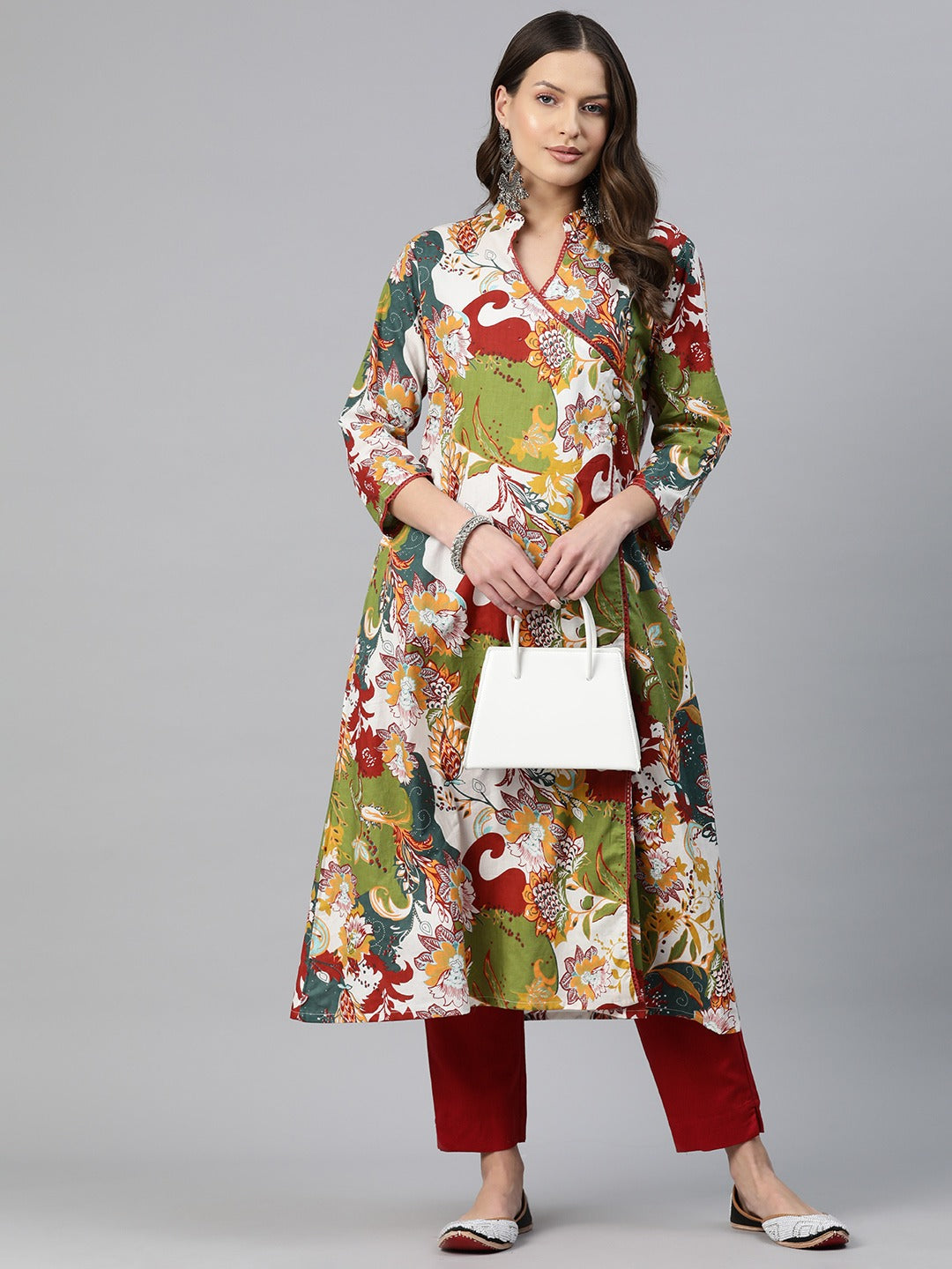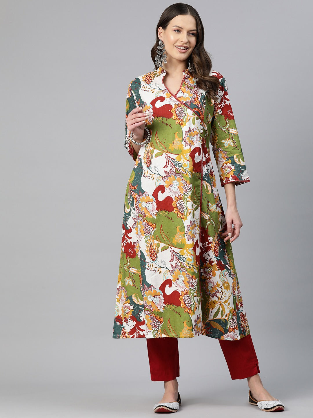 Straight Style Cotton Fabric Maroon Color Floral Printed Kurti With Palazzo