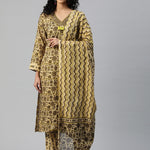 Straight Style Cotton Fabric Green Color Floral Printed Kurti With Palazzo And Dupatta