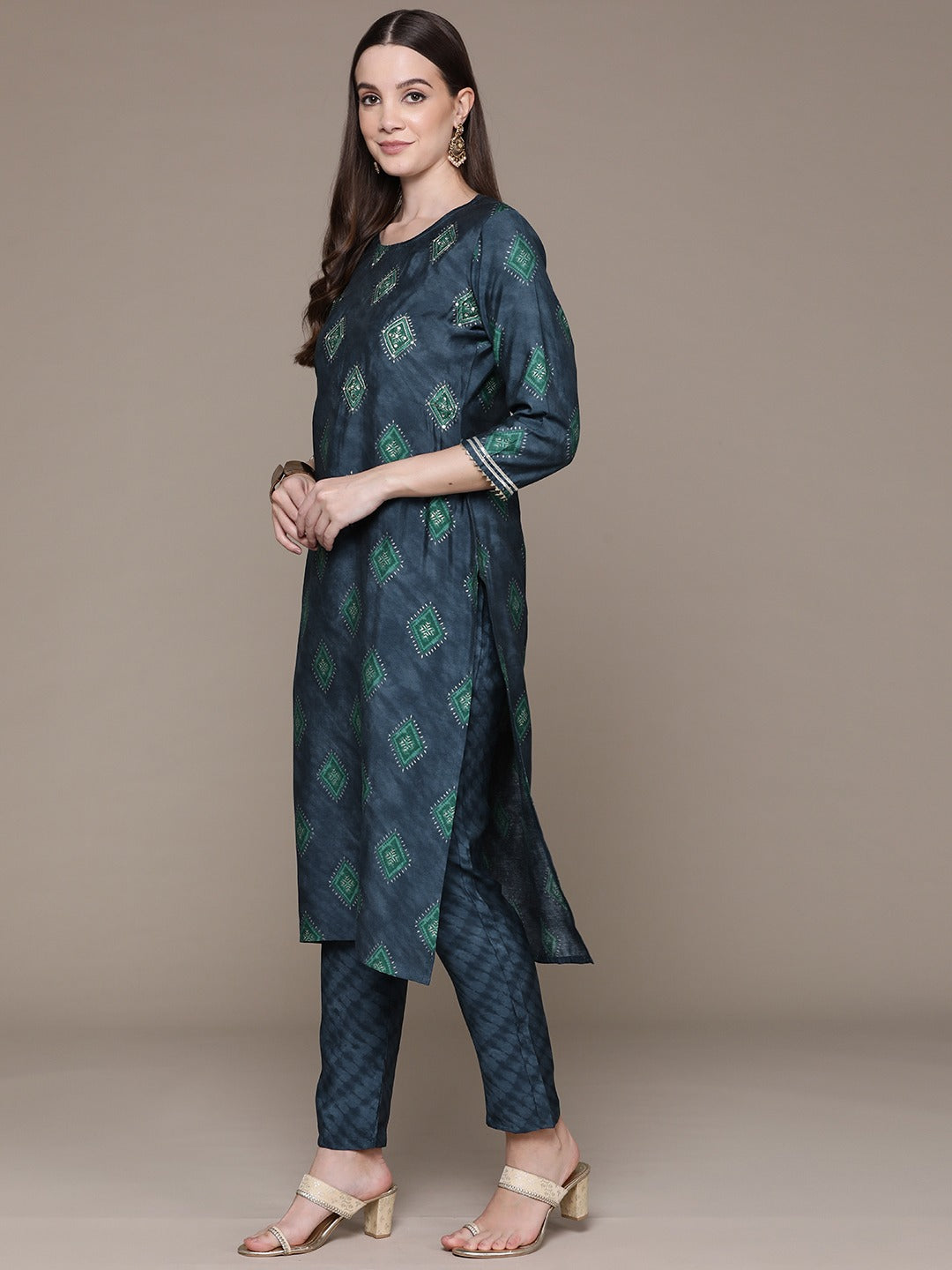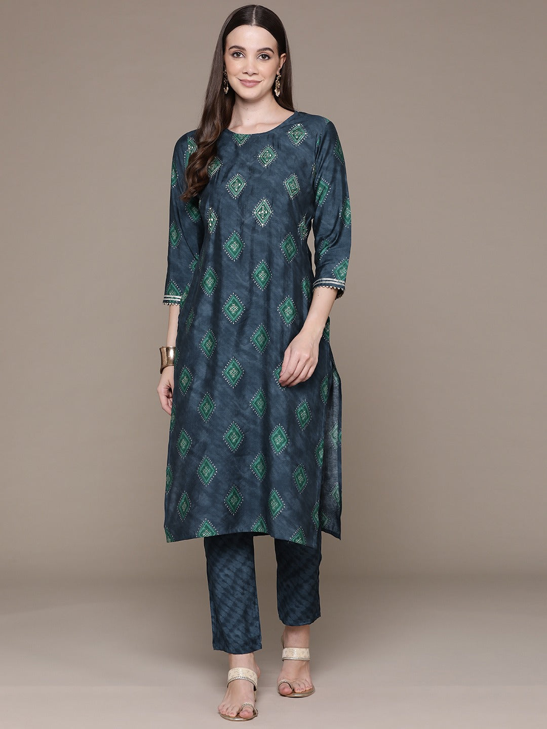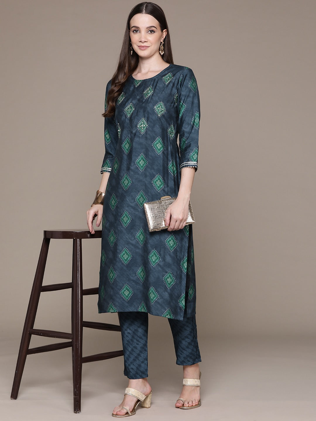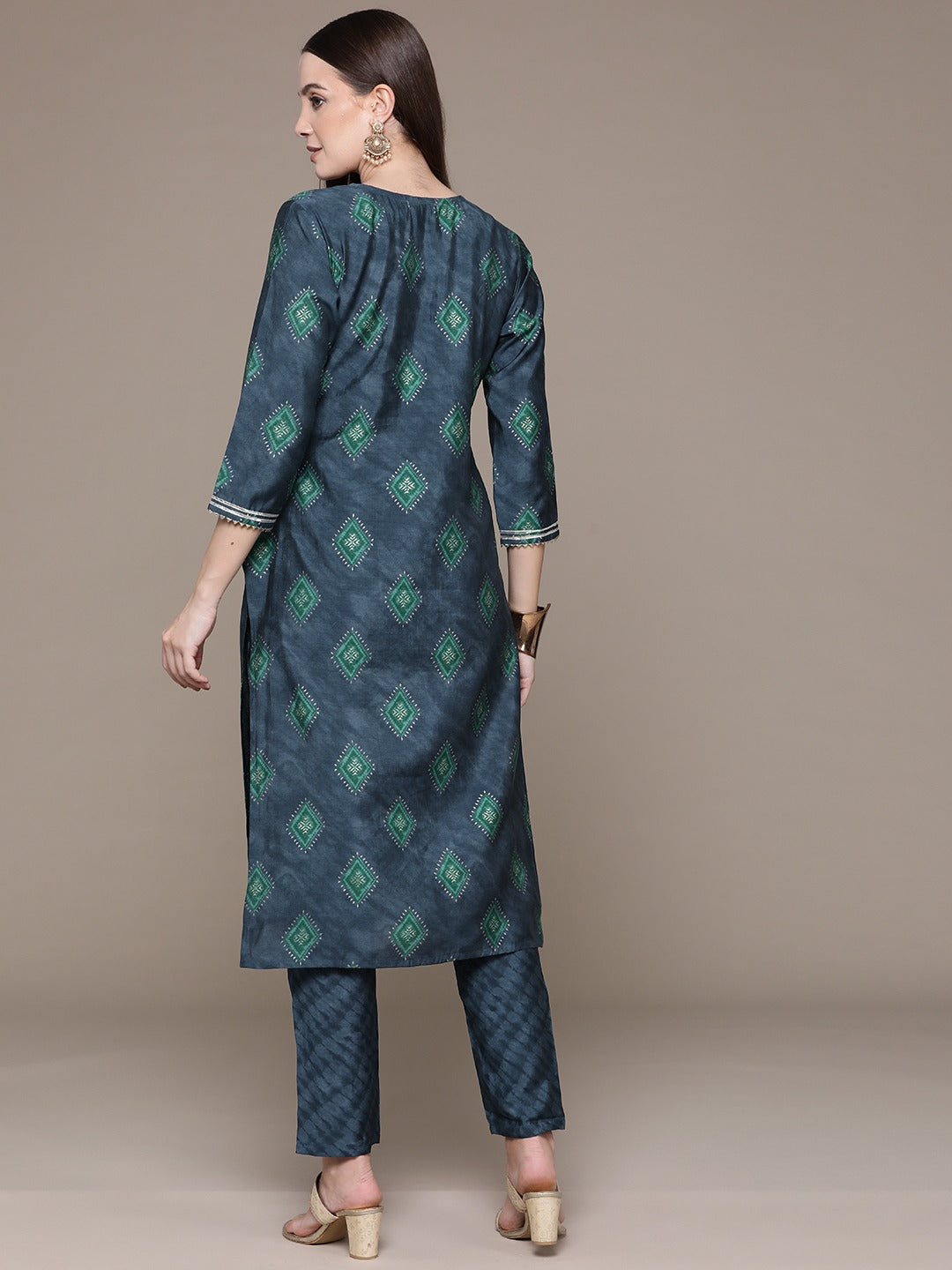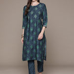 Straight Style Silk Fabric Grey Color Printed & Zari Work Kurti With Palazzo