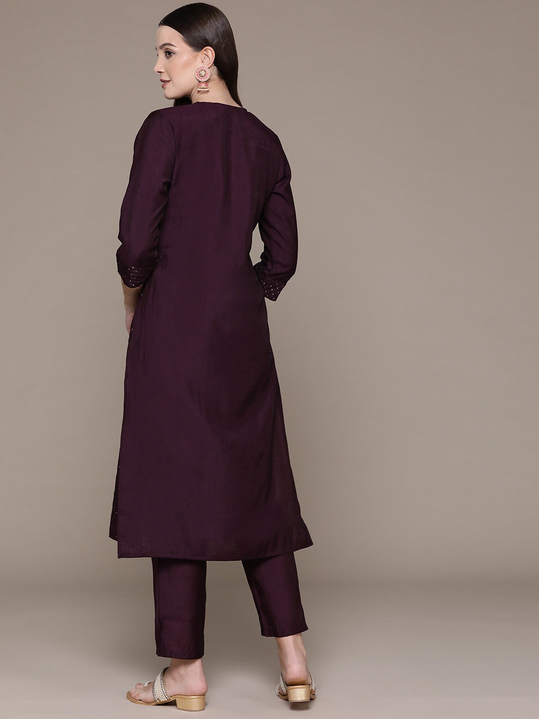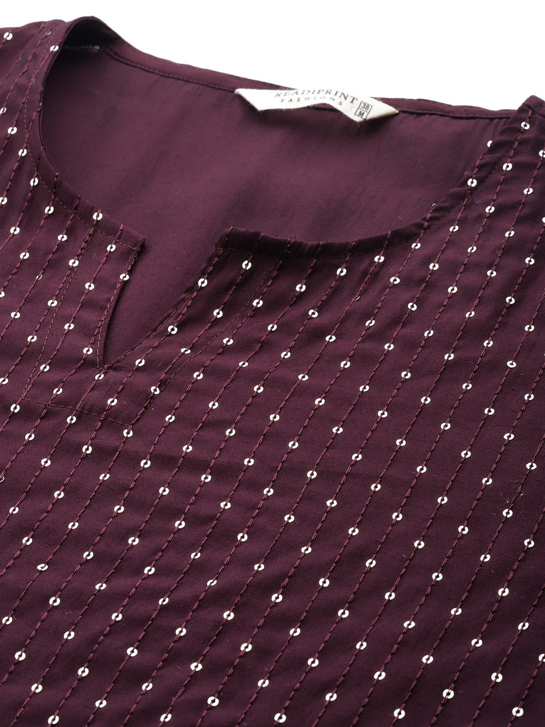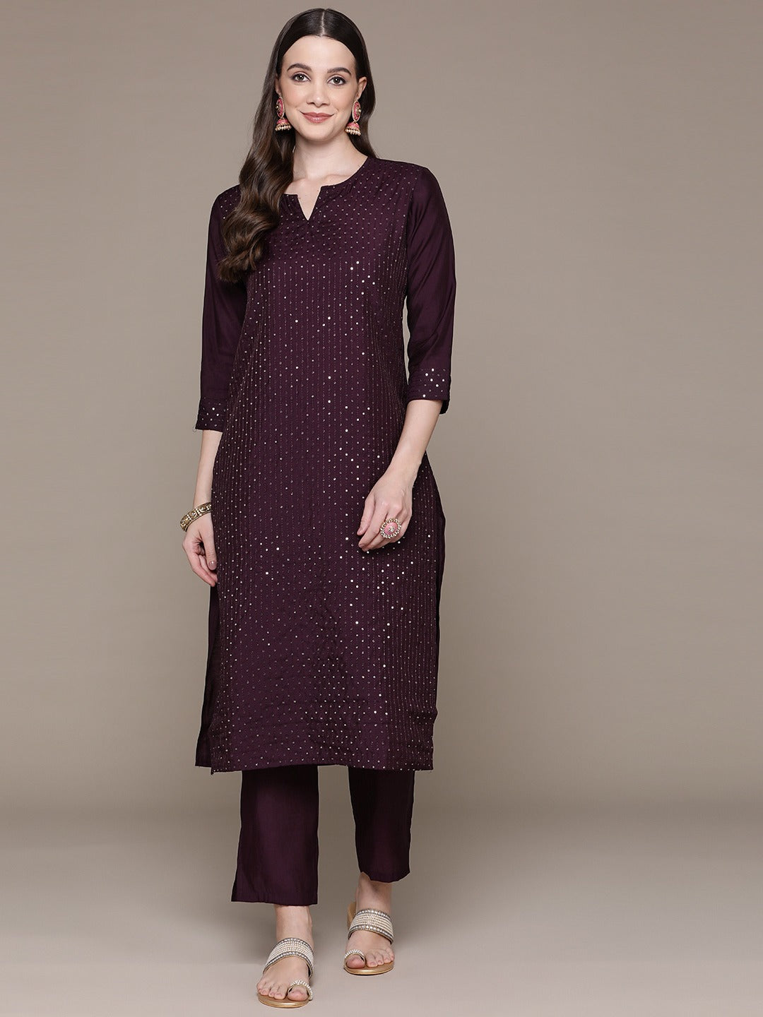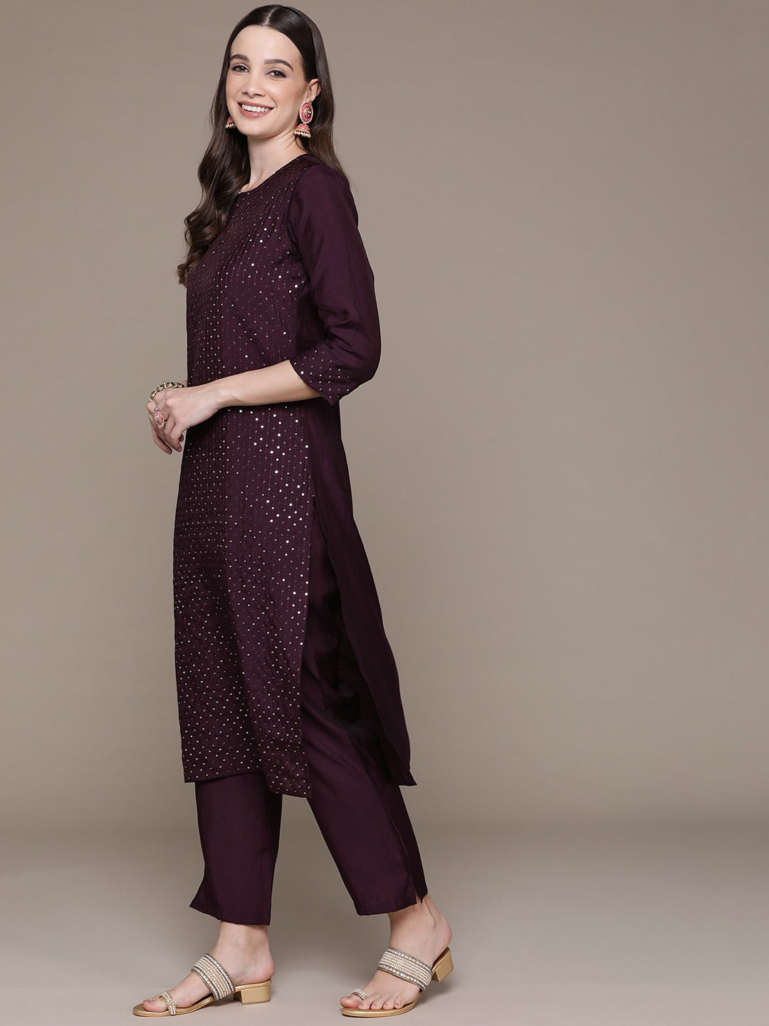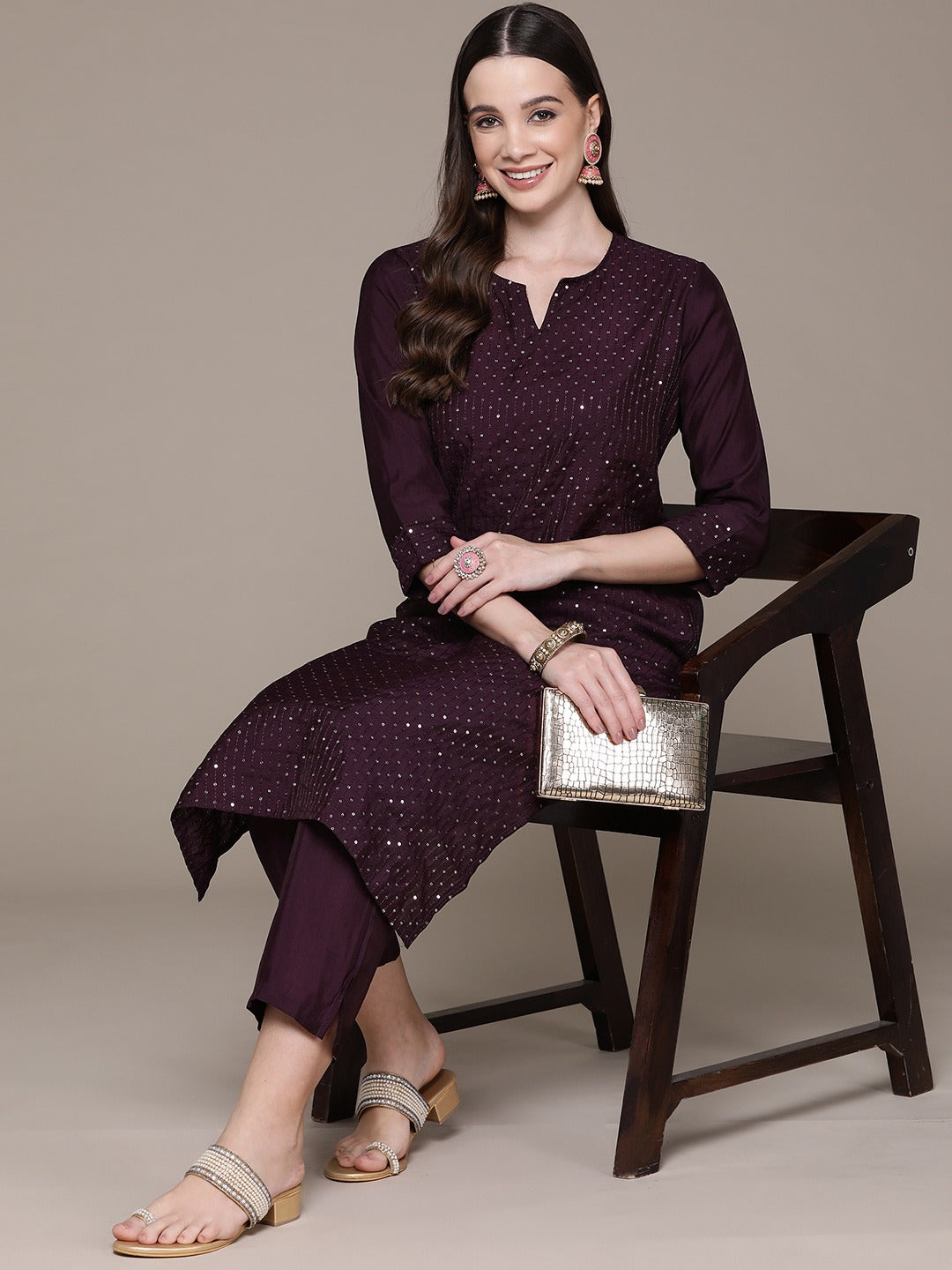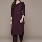 Straight Style Silk Fabric Maroon Color Sequined Work Kurti With Palazzo