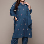 Straight Style Cotton Fabric Navy Blue Color Kurta With Bottom And Dupatta
