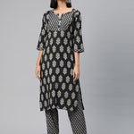 Straight Style Cotton Fabric Black Color Floral Printed Kurti With Palazzo