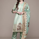 Straight Style Chanderi Silk Fabric Green Colour Kurta And Bottom With Dupatta