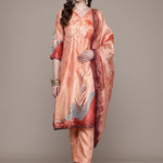 Straight Style Chanderi Silk Fabric Peach Colour Kurta And Bottom With Dupatta