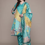Straight Style Chanderi Silk Fabric Sea Green Colour Kurta And Bottom With Dupatta