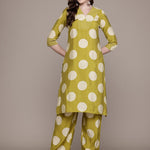 Straight Style Silk Fabric Green Colour Kurta With Bottom